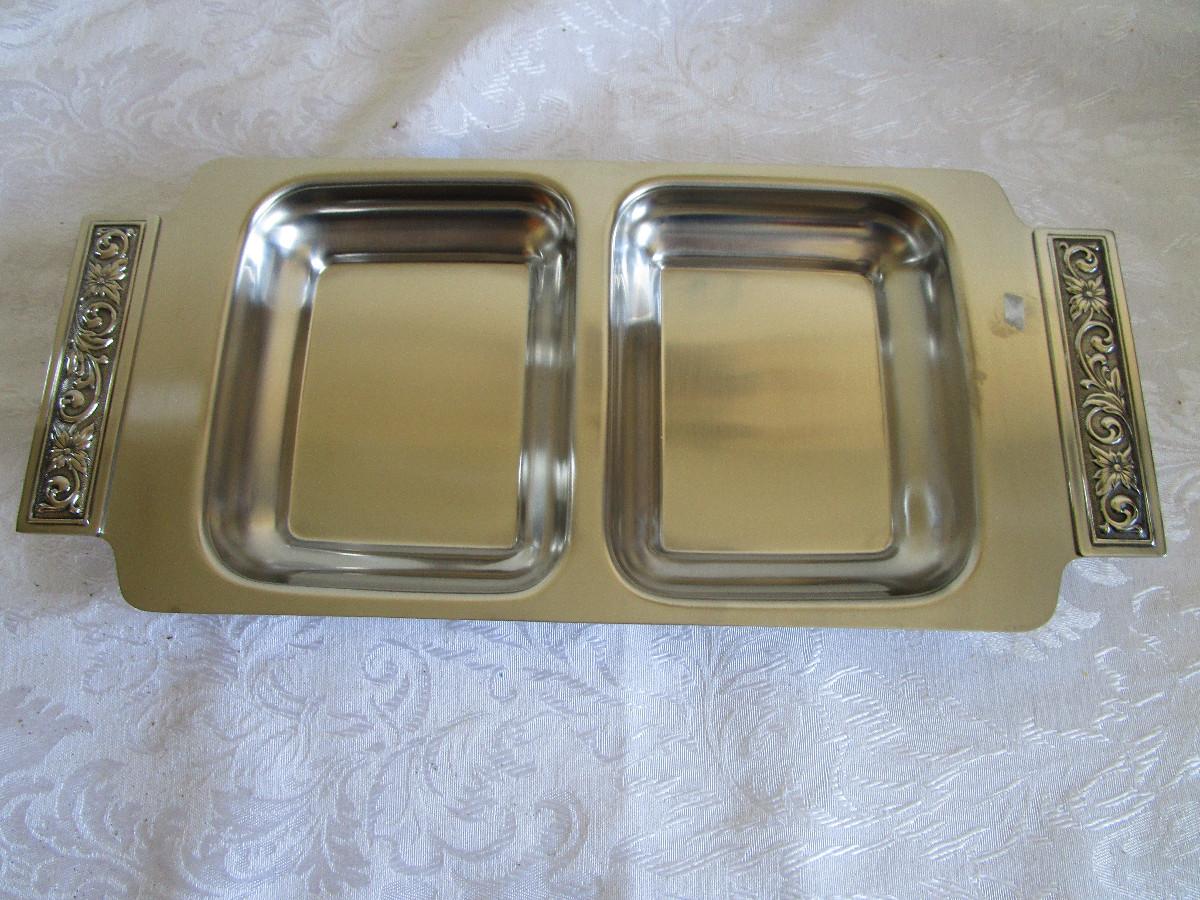 International Decorator Stainless Holloware, 2 compartment dish model 5009 NEW IN BOX