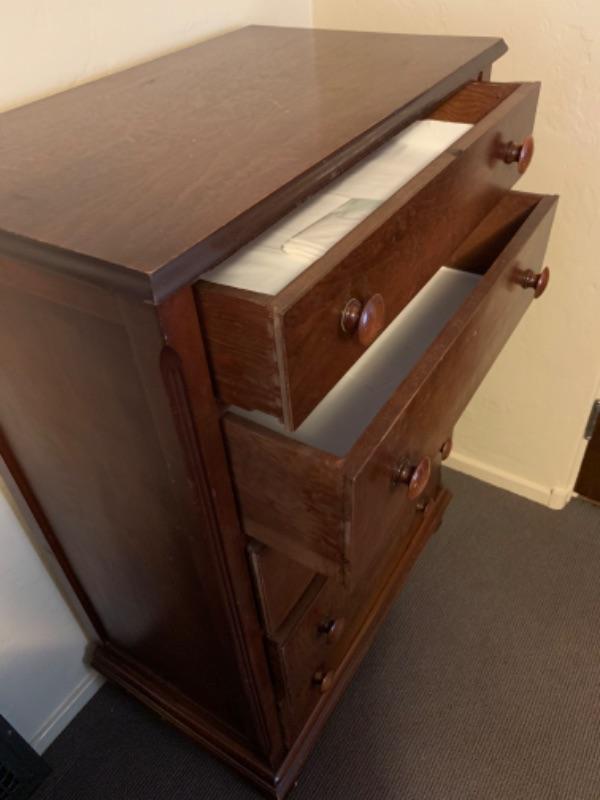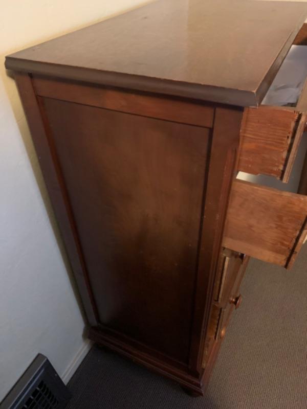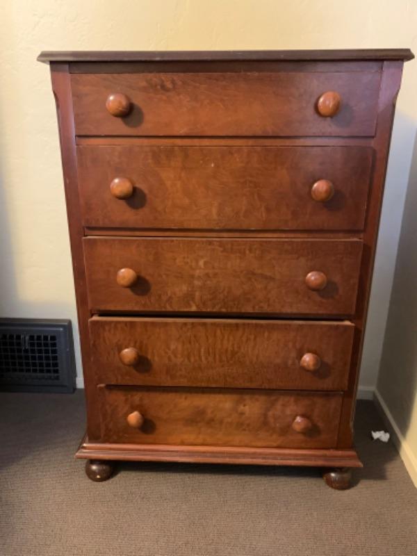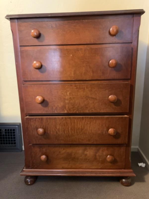 20. Vintage 5-drawer walnut dresser (30”x18”x49”)