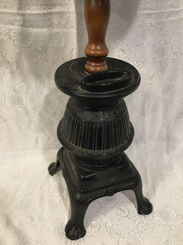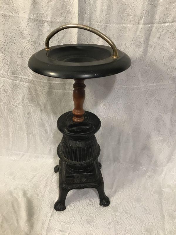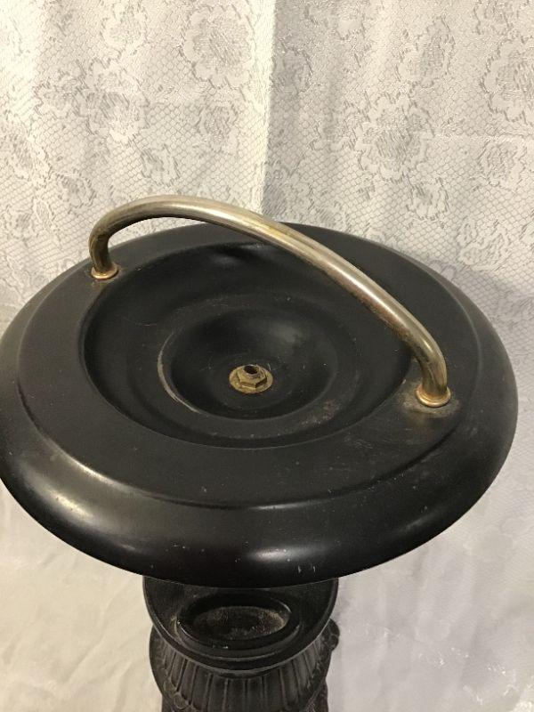 Needs ashtray insert. Looks like cast iron but too light to be cast iron. 21" H x 10" W
