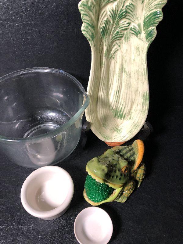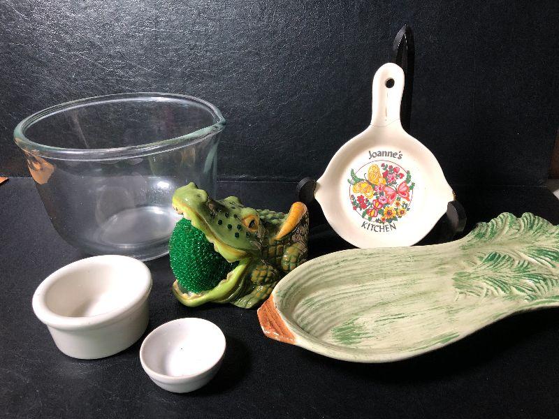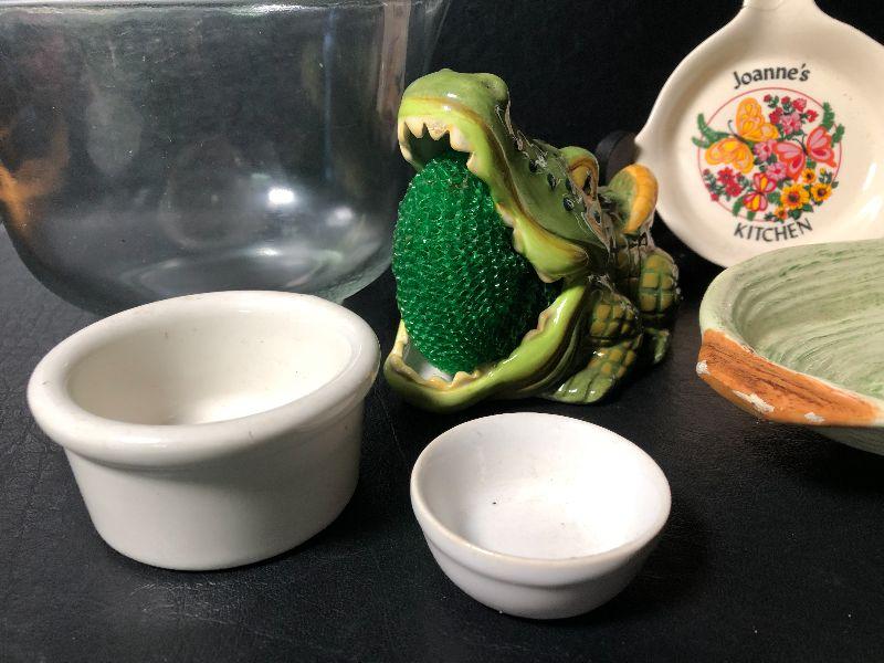 Alligator Sponge holder, celery plate and more *Please review all photos for condition and contents of lot.