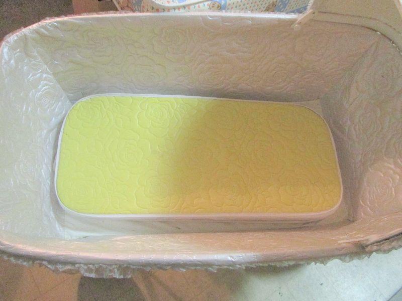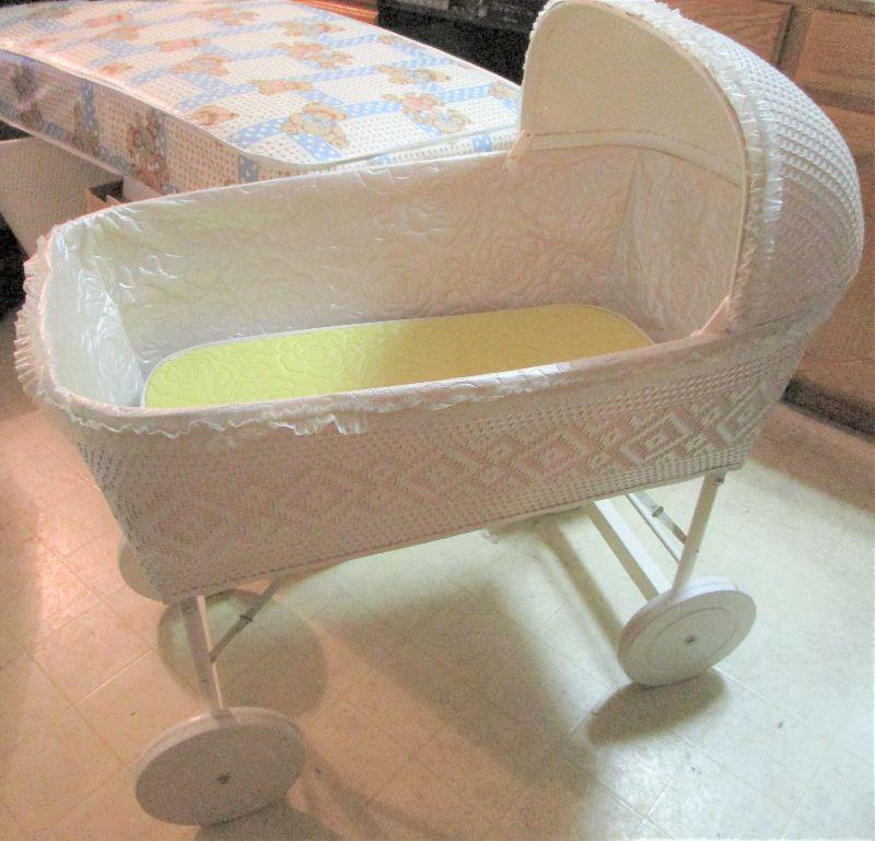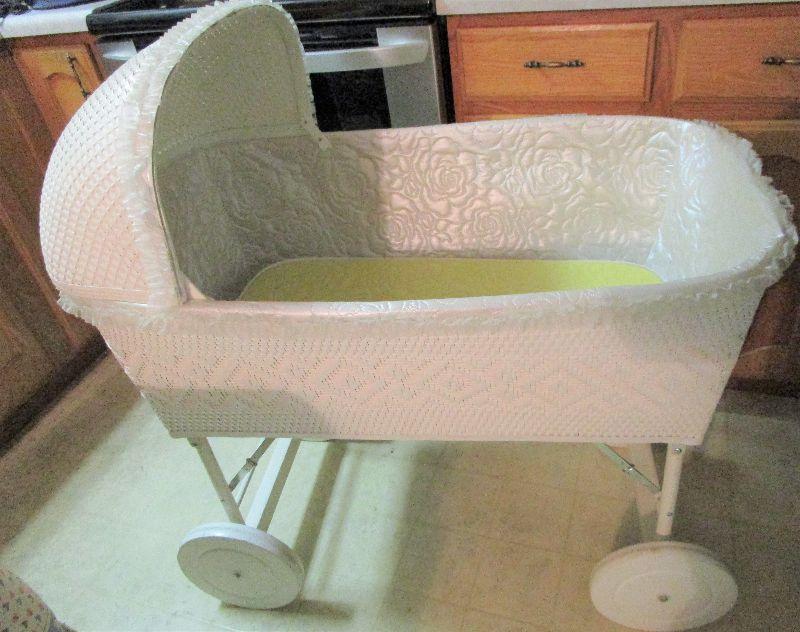 #20 Vintage White Wicker Bassinett. Excellent condition.
