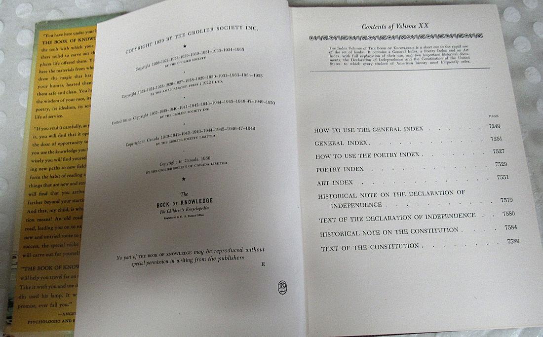 20 Volume Set of 1950 Book of Knowledge Encyclopedias With Super Graphics on the Dust Jackets