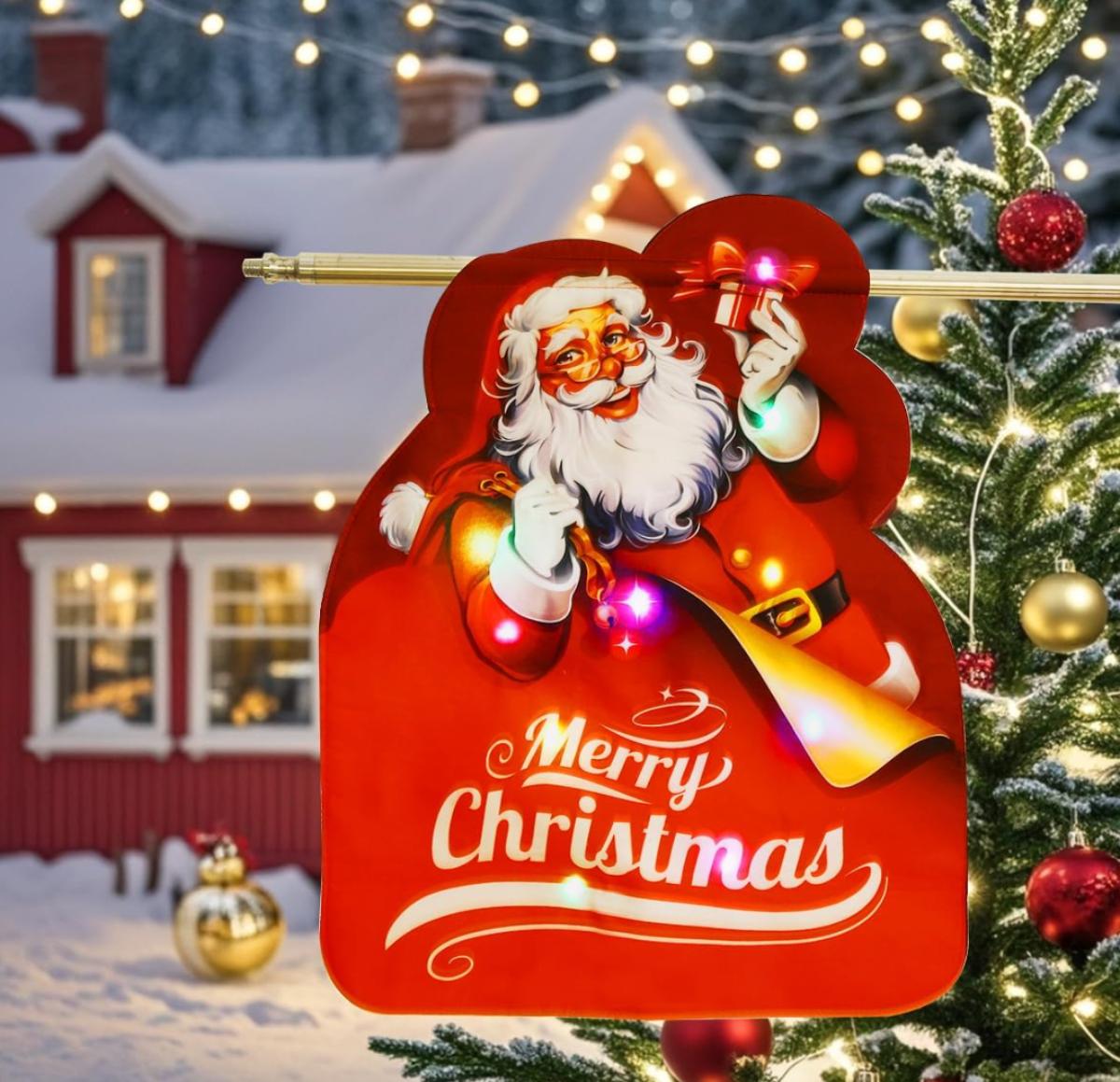 20" x 15" Vintage Inspired Santa Claus Lighted Christmas Garden Flag - Unique LED Santa Claus Multi-Colored Garden Flag, Winter Yard Flag - Porch Lawn Decoration, Excellent Xmas Decor