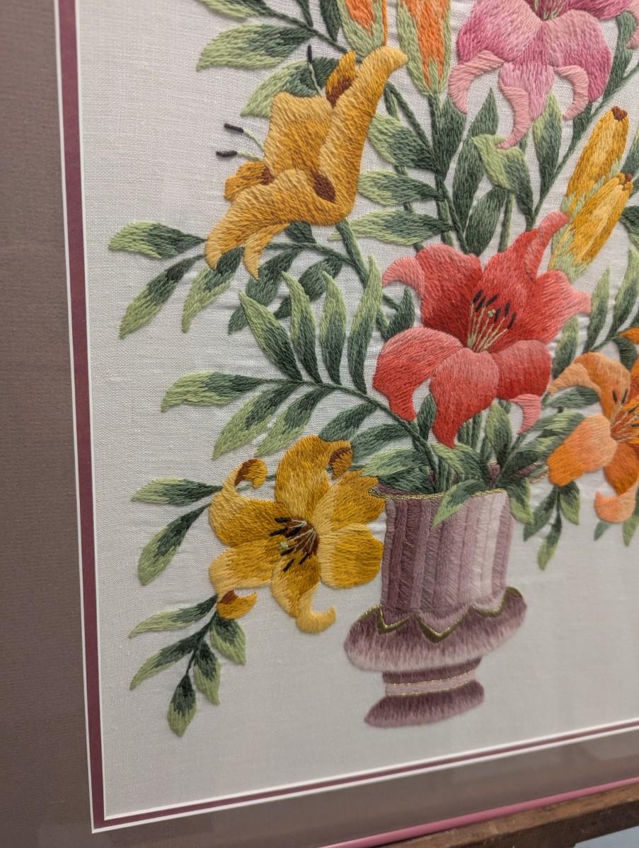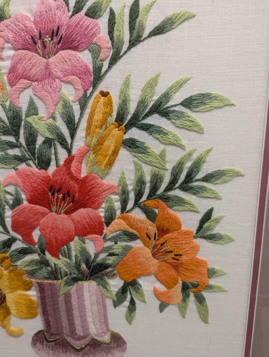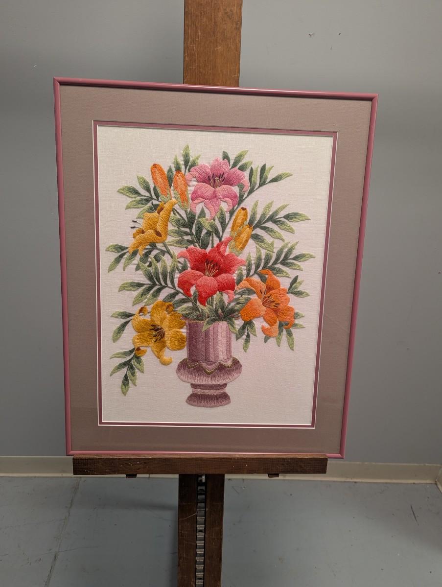 20" x 25 1/4" Cross Stitch Flower Bouquet Framed Art