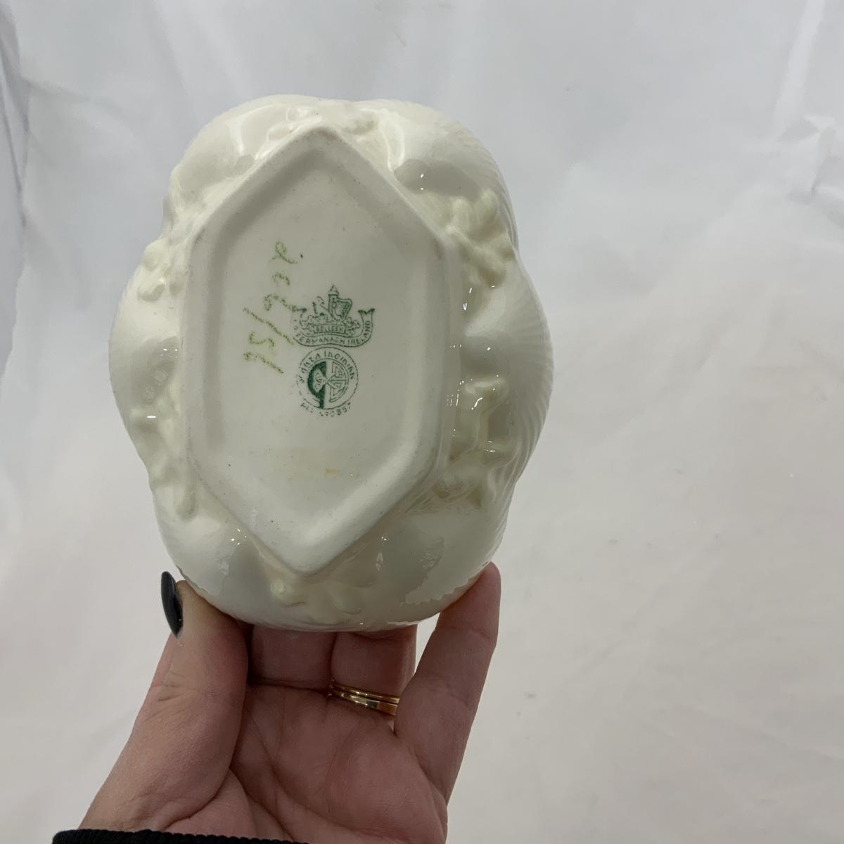 From the Estate of Peter and Alice Radovanovich: Delicate Belleek Dish with a gorgeous finish, as all Belleek dishes have. No cracks or chips noted. Please see photos for details and condition. ::: Shipping is available on this lot. If you require shipping you must let us know at the close of the auction. We will coordinate with you after the item has been won. Shipping fees will include insurance up to or exceeding the value of all items being mailed. If you have any questions regarding this lot please contact the auctioneer either via this website, by direct email or by phone. PICK UP TIMES and other important information can be found in the TERMS and DESCRIPTION of the auction. Please take a look for pertinent information. Thanks!
