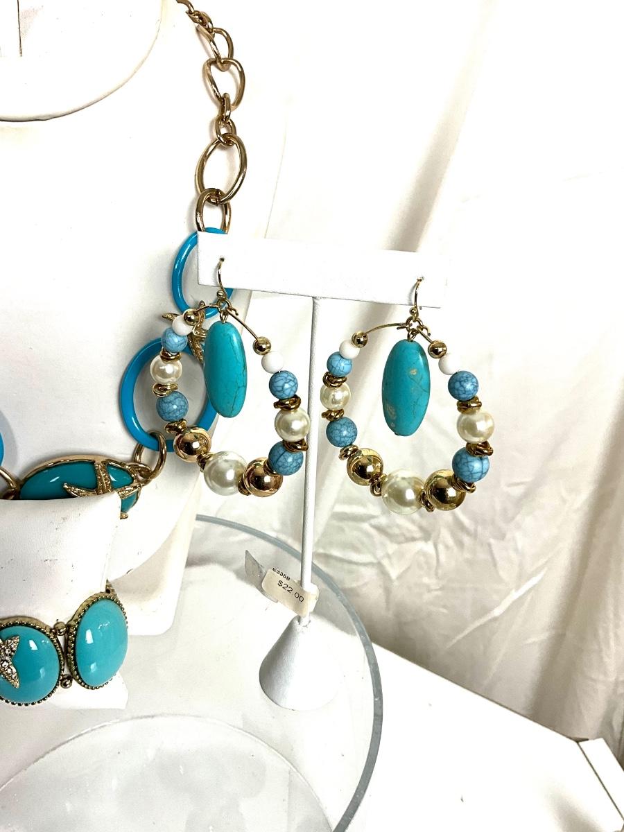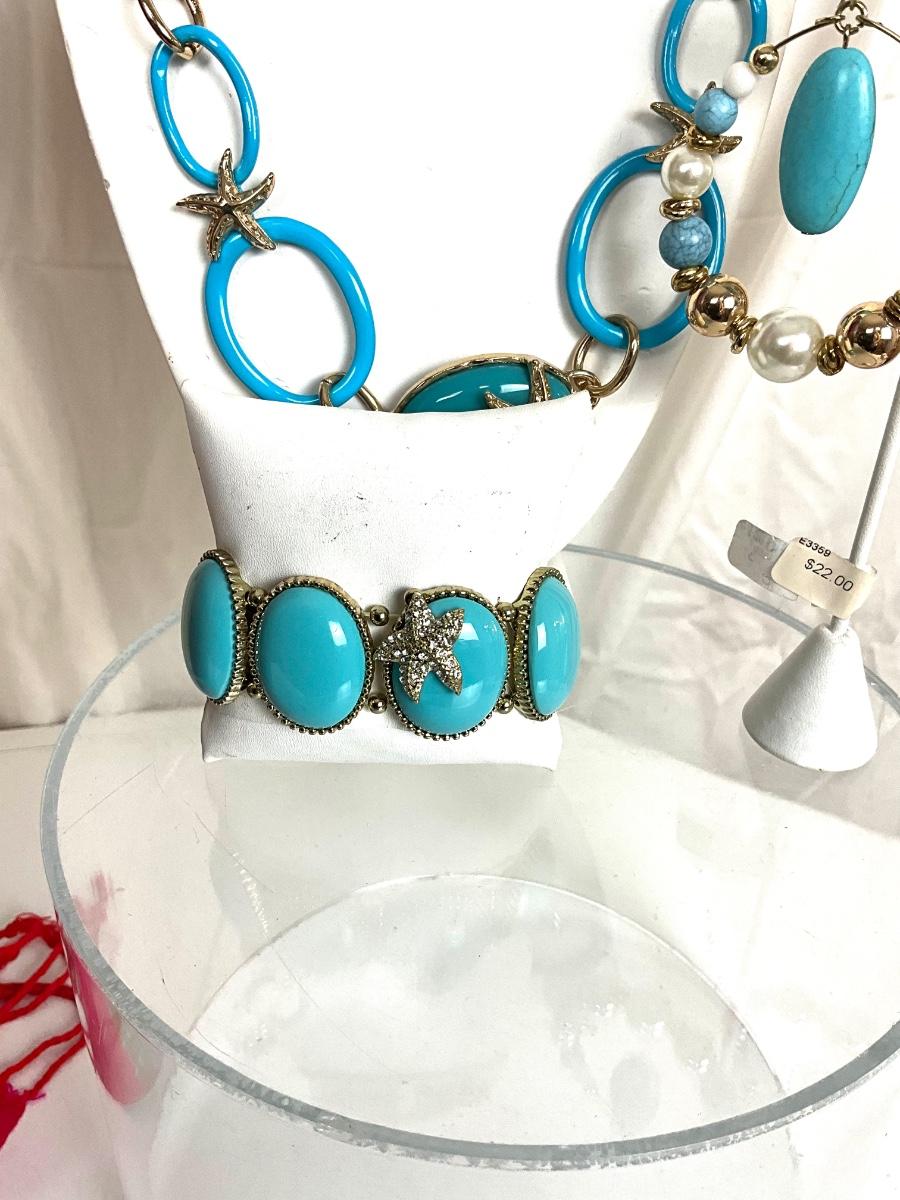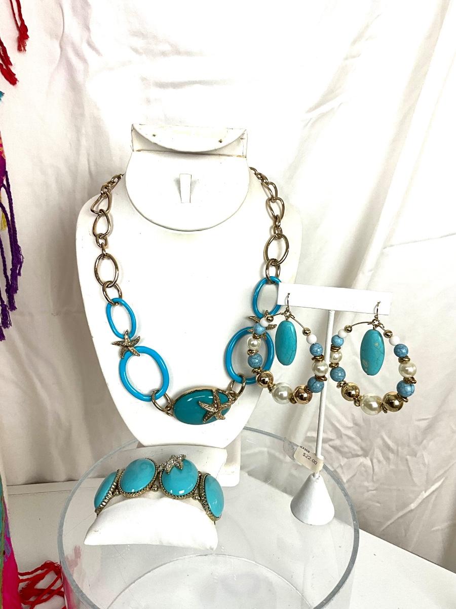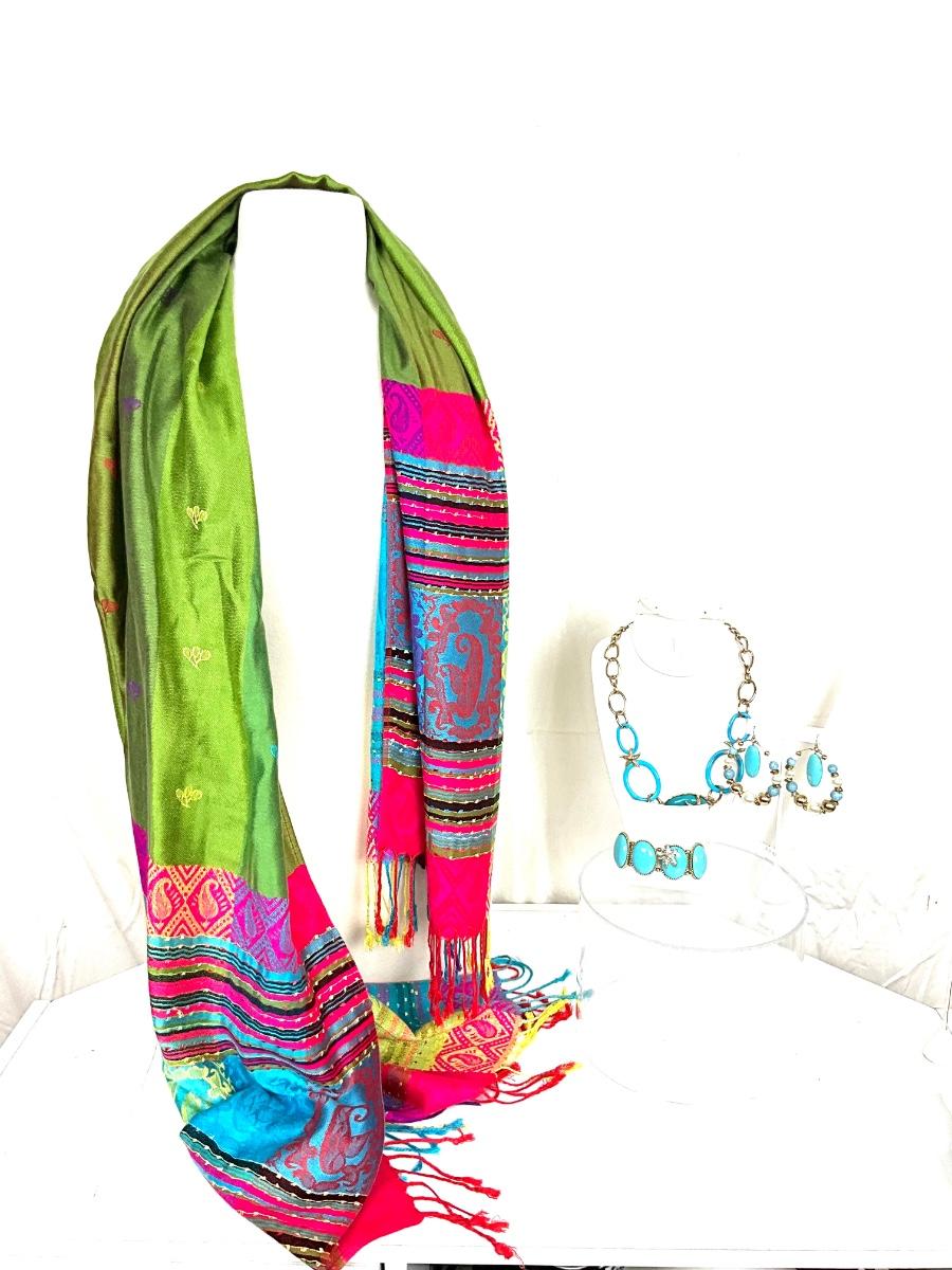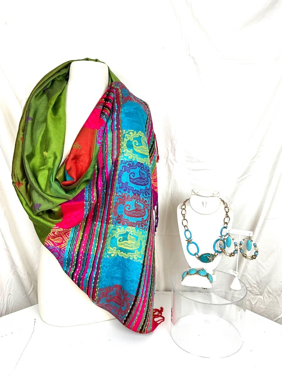 200 Bright Pashmina with Starfish Turquoise Jewelry Set