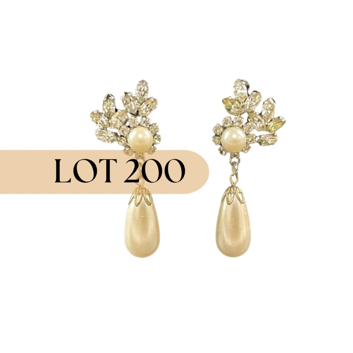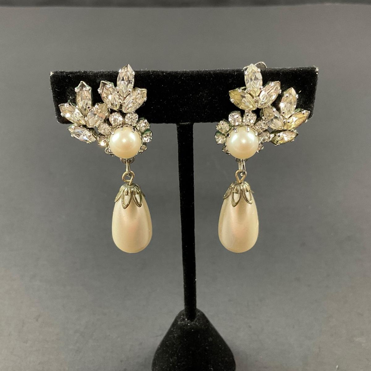 One pair of vintage Christian Dior Germany marked believed to be pearl but not guaranteed clip earrings. This piece does have some scuffs, scratches, marks, or slight damage, but otherwise appears to be in great shape. Please see photos for details and condition. Any condition statement is given as a courtesy to a client, is an opinion, and should not be treated as a statement of fact. Reference to condition written, oral or within a condition report shall not be regarded as a full account of condition and may not include all defects, alterations, or restorations. Absence of a condition report does not imply a lot is flawless or lacking imperfections or damage. Katherine’s Auction & Appraisal Service shall have no responsibility for any error or omission. Returns shall not be accepted on the basis of condition. ::: Shipping is available on this lot. If you require shipping you must let us know at the close of the auction. We will coordinate with you after the item has been won. Shipping fees will include insurance up to or exceeding the value of all items being mailed. If you have any questions regarding this lot please contact the auctioneer either via this website, by direct email or by phone. PICK UP TIMES and other important information can be found in the TERMS and DESCRIPTION of the auction. Please take a look for pertinent information. Thanks!