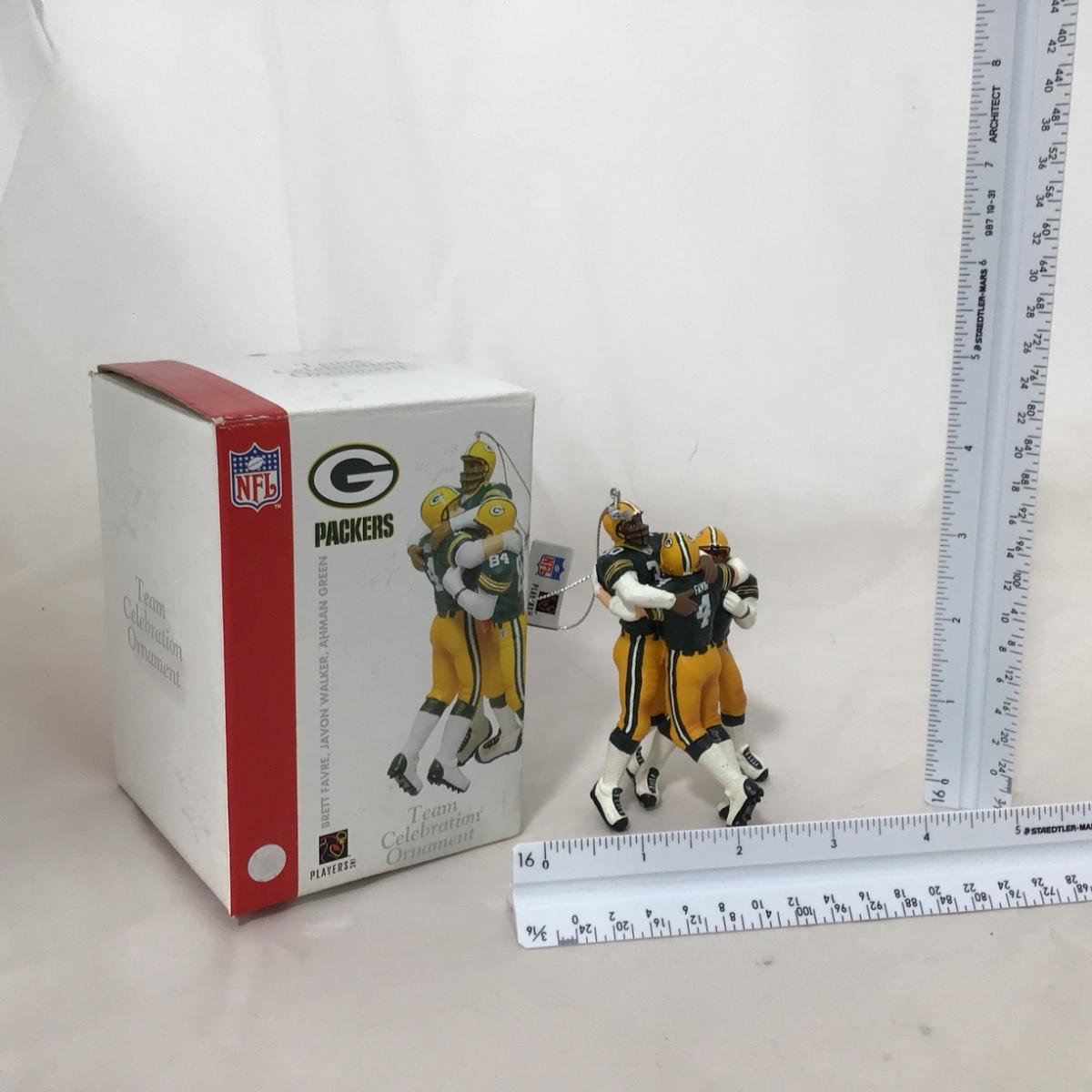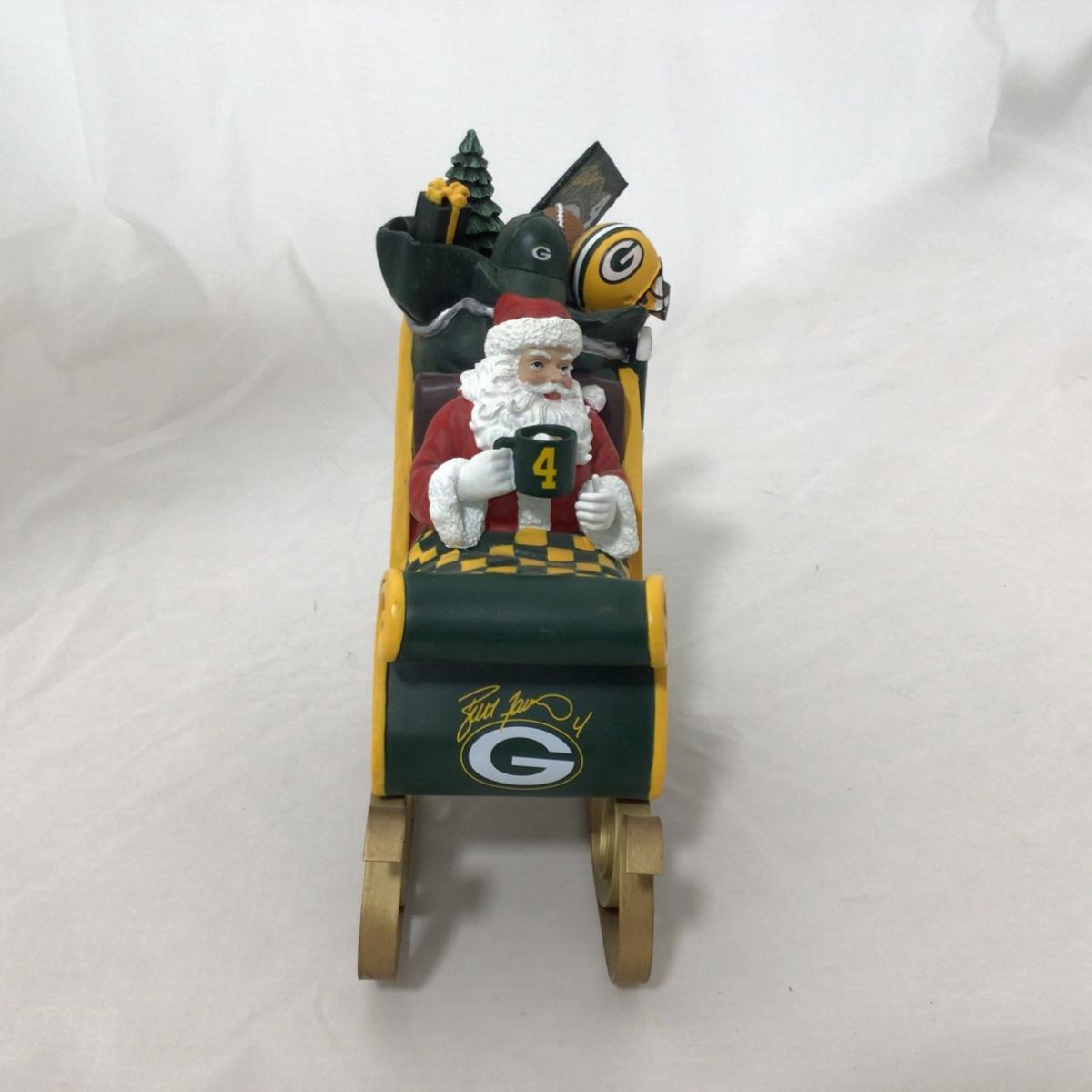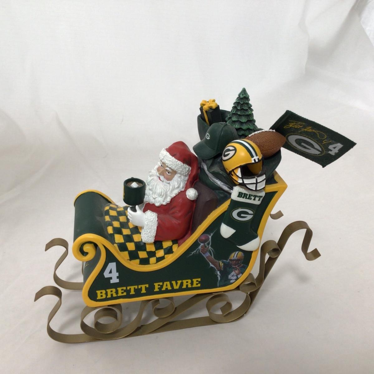 Packers and Brett Favre themed miscellaneous items including an ornament, Santa in sleigh, snow globe, Favre pictures, magnets, standup, and glass decorative piece. Please see photos for details and condition. ::: Shipping is available on this lot. If you require shipping you must let us know at the close of the auction. We will coordinate with you after the item has been won. Shipping fees will include insurance up to or exceeding the value of all items being mailed. If you have any questions regarding this lot please contact the auctioneer either via this website, by direct email or by phone. PICK UP TIMES and other important information can be found in the TERMS and DESCRIPTION of the auction. Please take a look for pertinent information. Thanks!