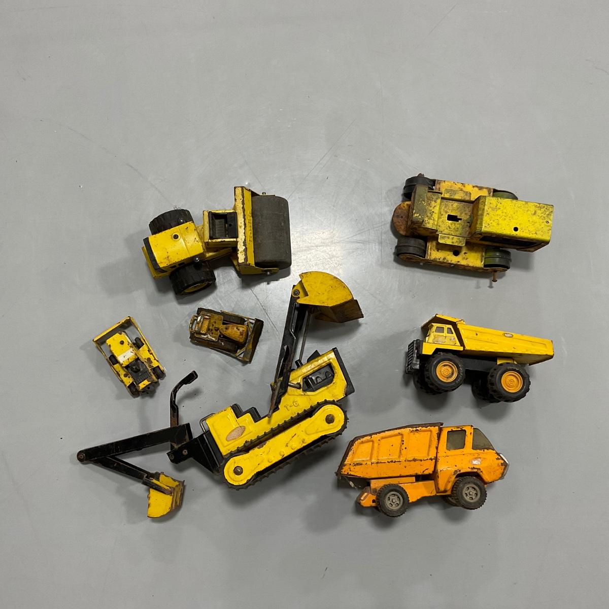 Lot of vintage construction toys some are Tonka. These pieces have been played with and very well loved, which has given them some damage. Please see photos for details and condition. ::: Shipping is available on this lot. If you require shipping you must let us know at the close of the auction. We will coordinate with you after the item has been won. Shipping fees will include insurance up to or exceeding the value of all items being mailed. If you have any questions regarding this lot please contact the auctioneer either via this website, by direct email or by phone. PICK UP TIMES and other important information can be found in the TERMS and DESCRIPTION of the auction. Please take a look for pertinent information. Thanks!