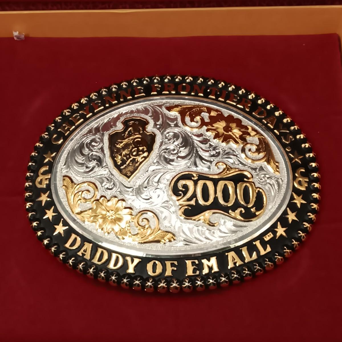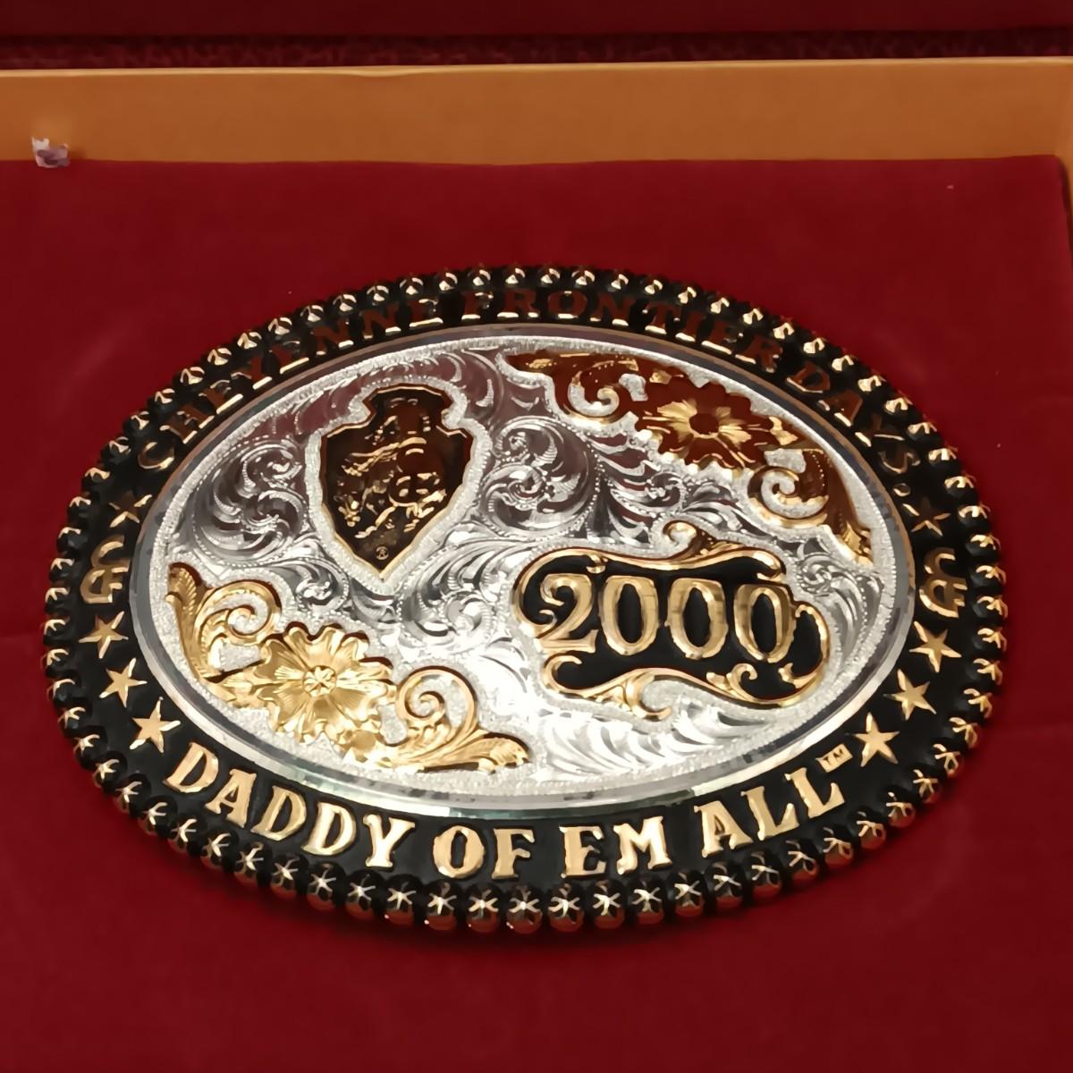 "2000 CHEYENNE FRONTIER DAYS DADDY OF EM ALL" BELT BUCKLE BY GIST SILVERSMITH