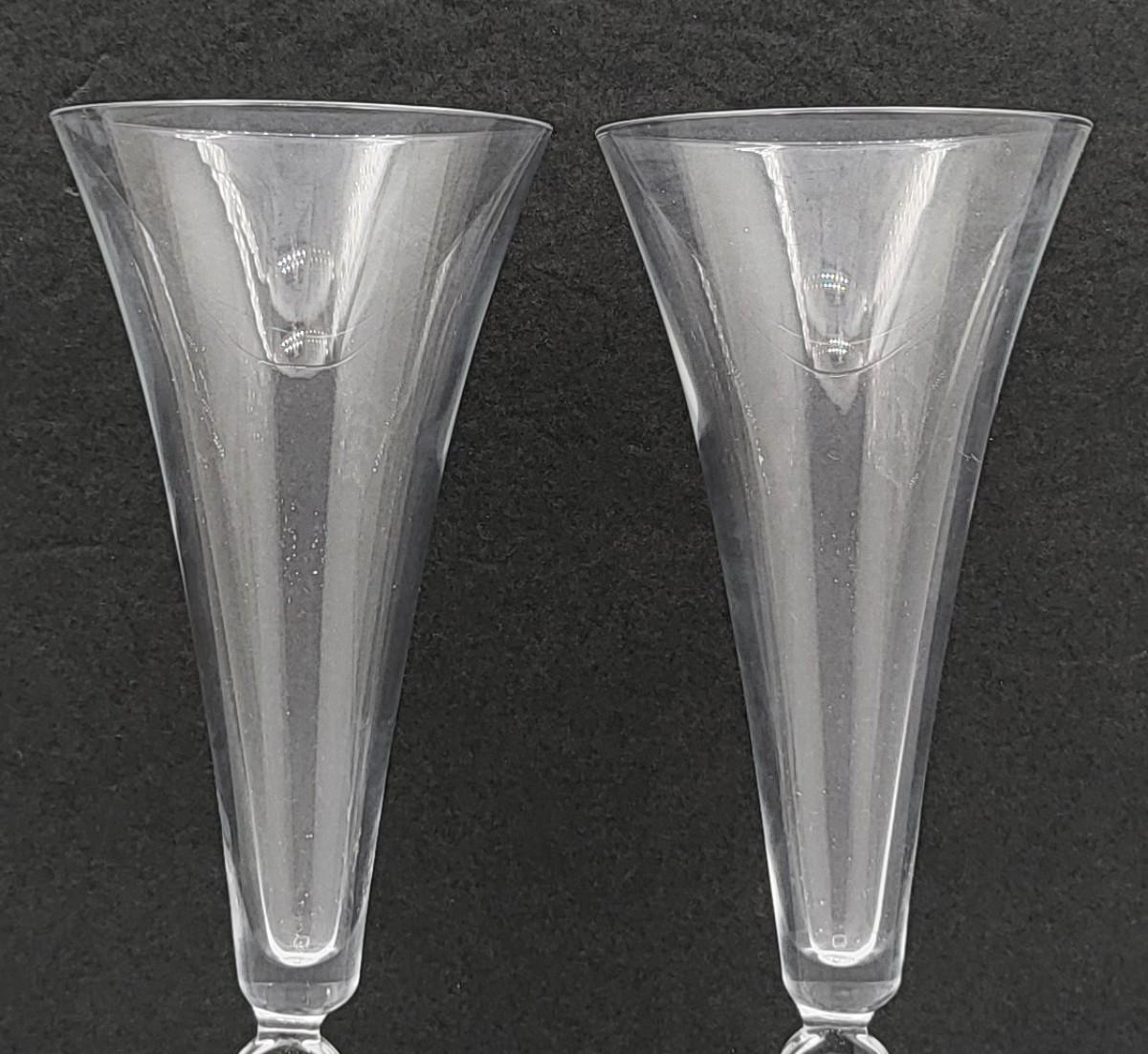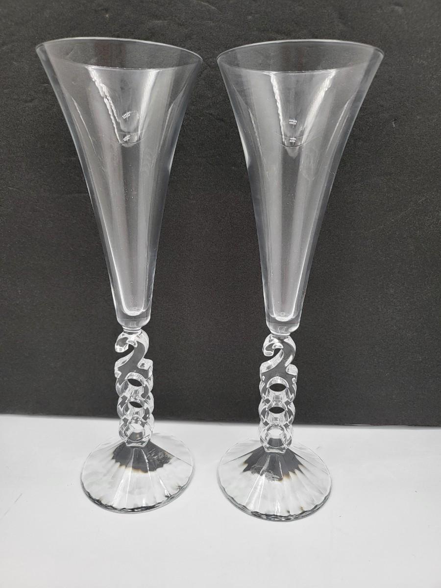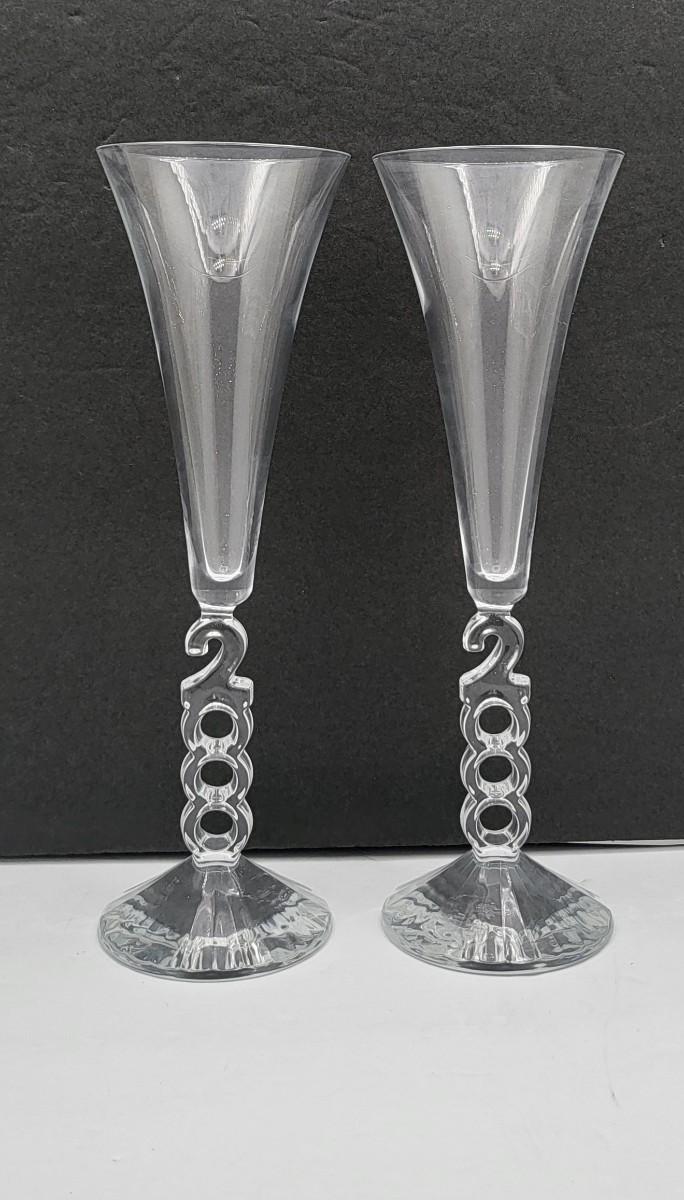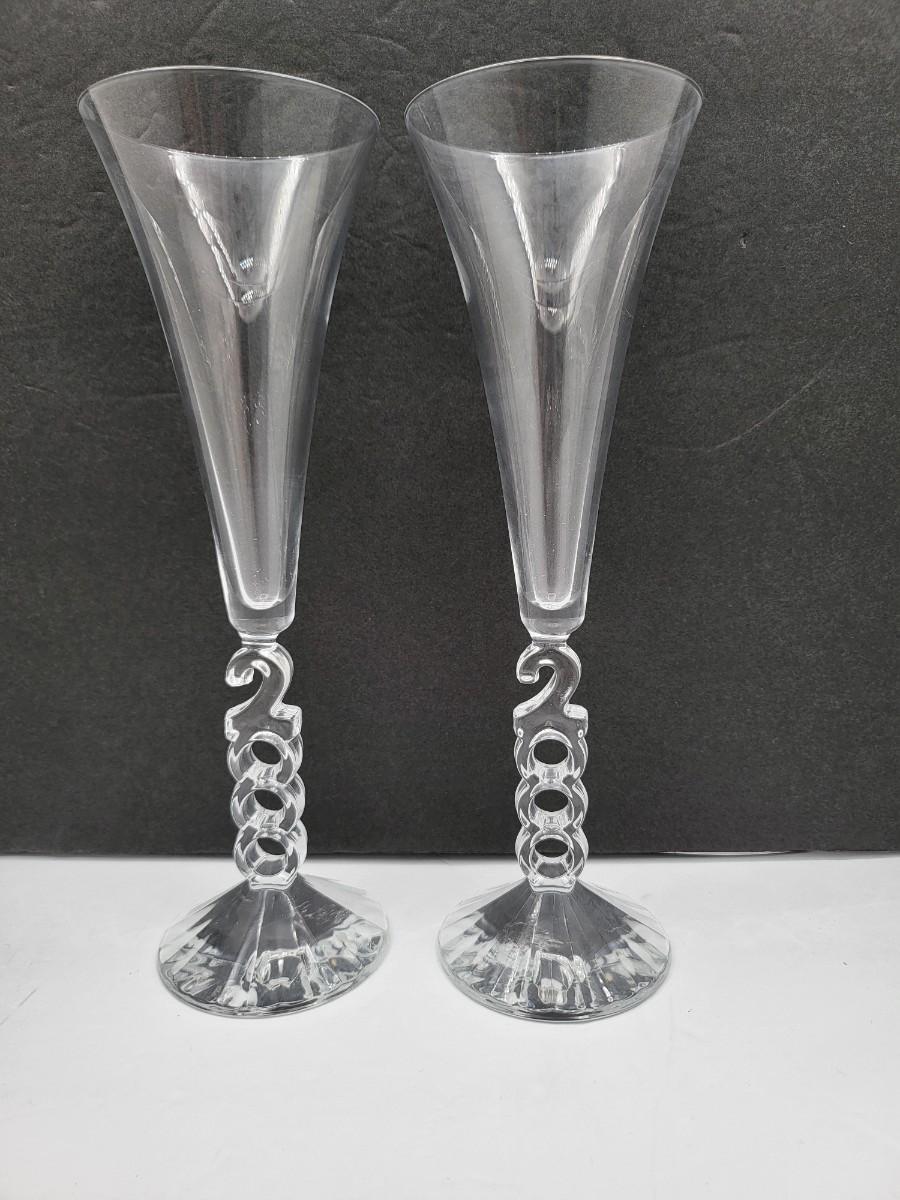 Pair of fine, collectible 10" crystal champagne flute glasses from the year 2000.