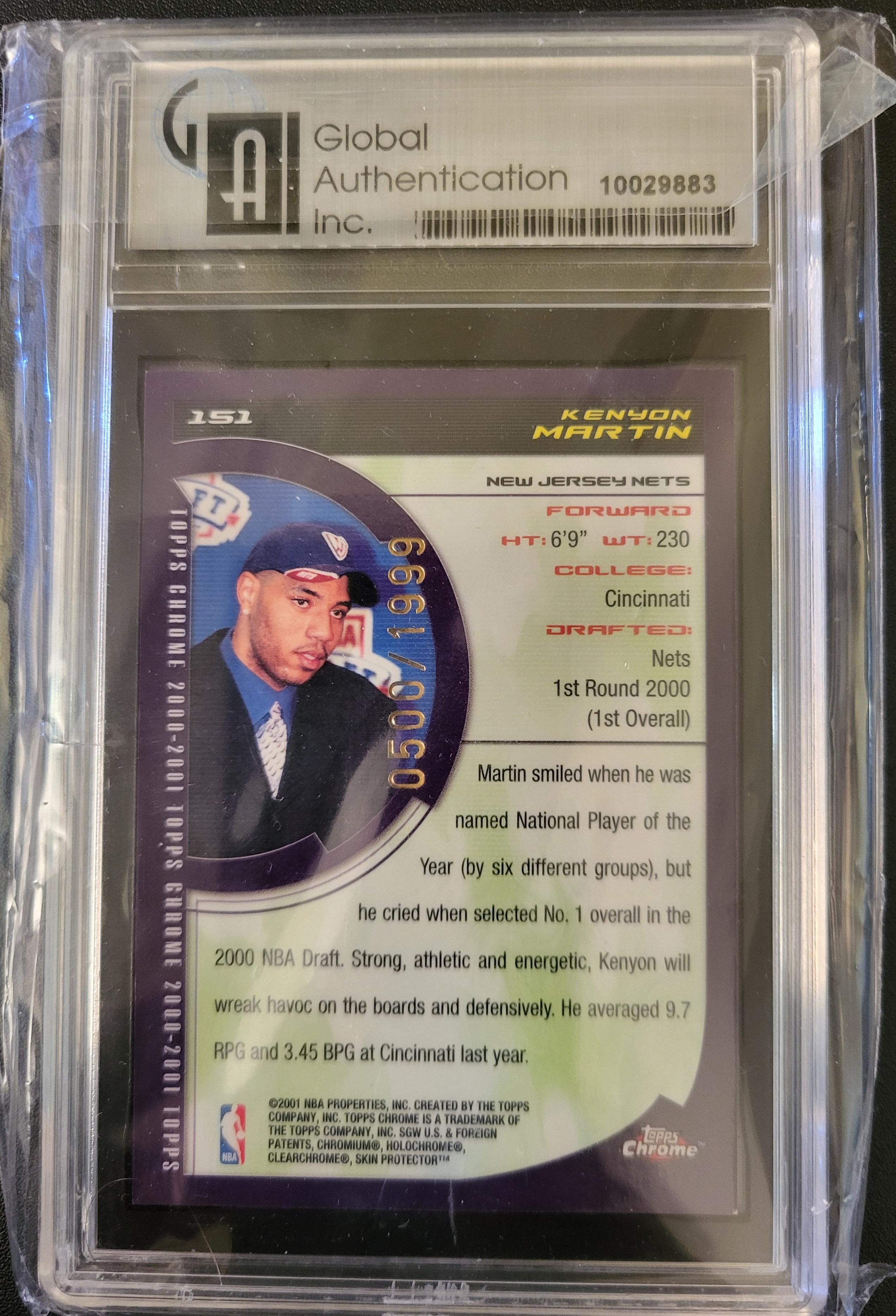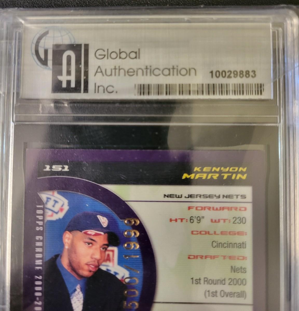 2000 Topps Chrome Kenyon Martin 1st Graded GAI NM-MT 8, #1 Draft Pick, Number 500/1999