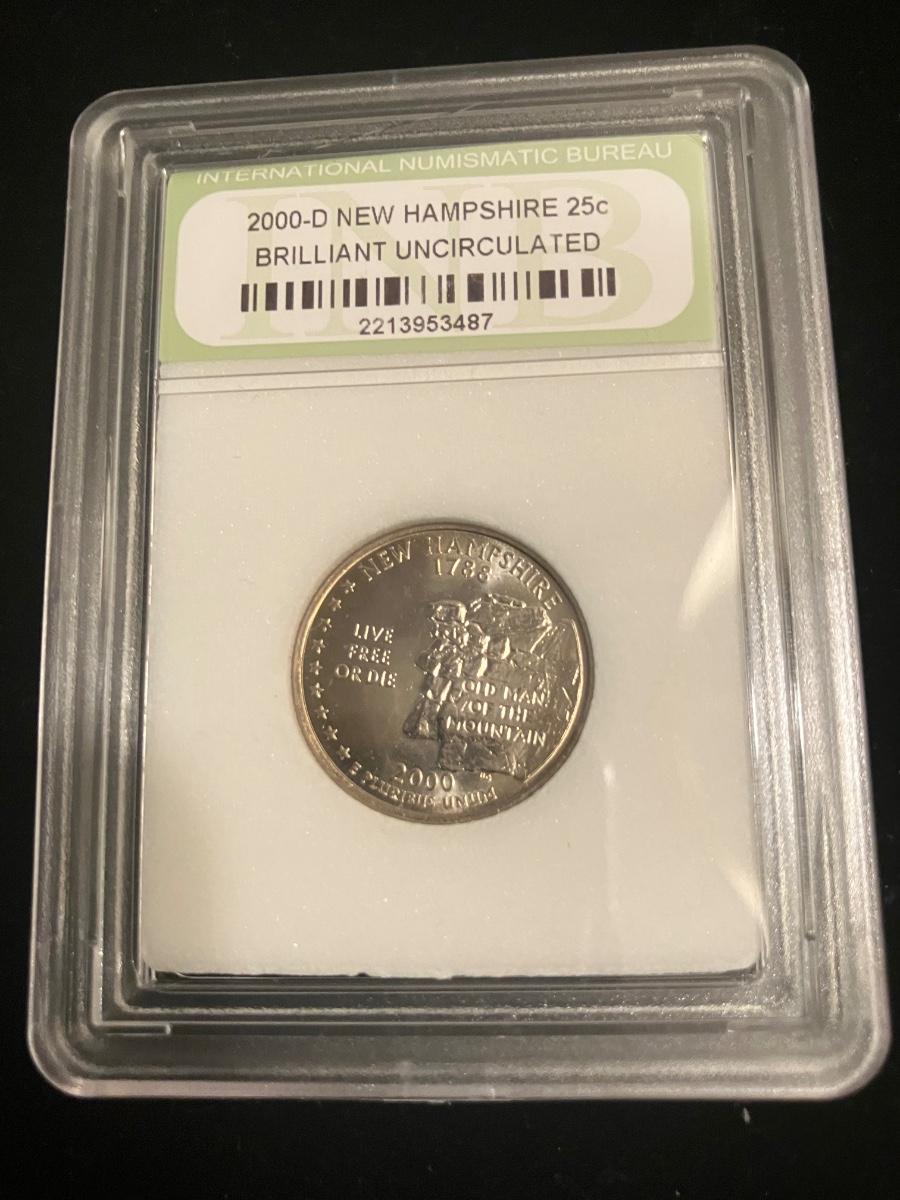 2000-D New Hampshire State Quarter - Brilliant Uncirculated in INB Slab - Old Man of the Mountain Design - Nice Eye Appeal!