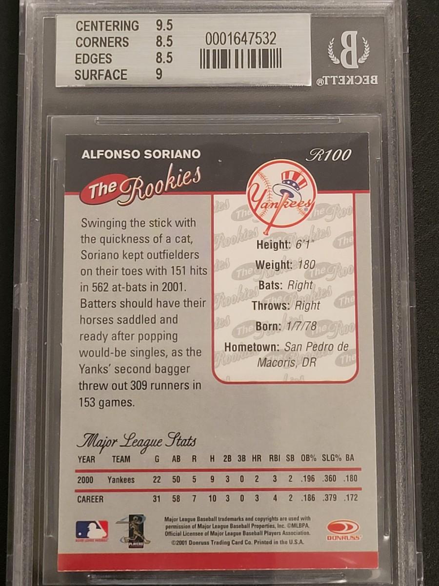 2001 DONRUSS ROOKIES GRADED 8.5 NEAR MINT- MINT CONDITION ALFONSO SORIANO