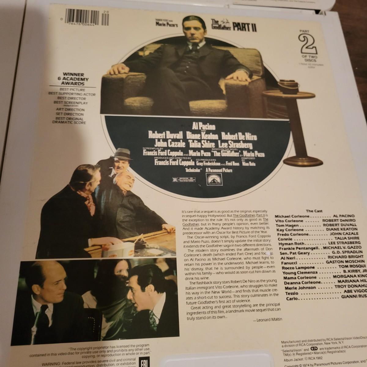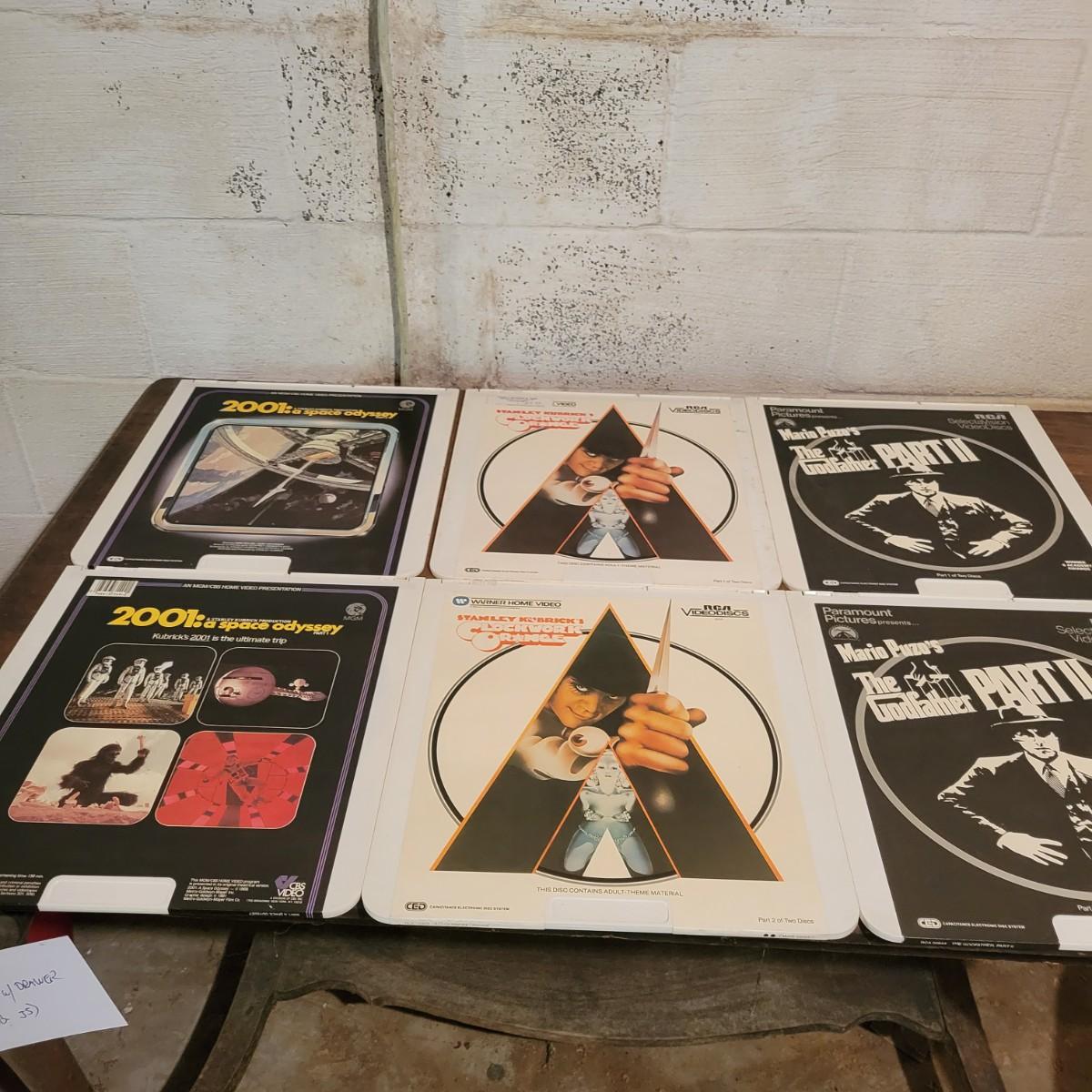 A collection of three classic movies on VideoDisk in good condition. This collection includes two discs for each movie and has superb artwork on their covers. Titles include 2001: A Space Odyssey, Clockwork Orange, and The Godfather. Shipping available