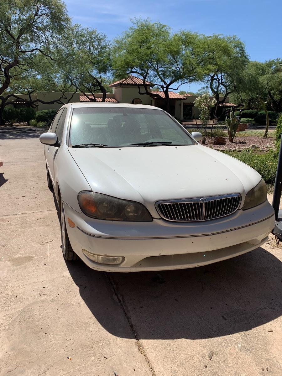 4 Door Sedan 2001 Infinity I30. Starts, but has check engine issues related to catalytic converter. Needs new shocks. Vin: JNKCA31A71T005018. Tires are new. Body in great condition. Seats are torn, hence the covers. Clean Title. Odometer at 118,144 miles. Quarter tank of gas.