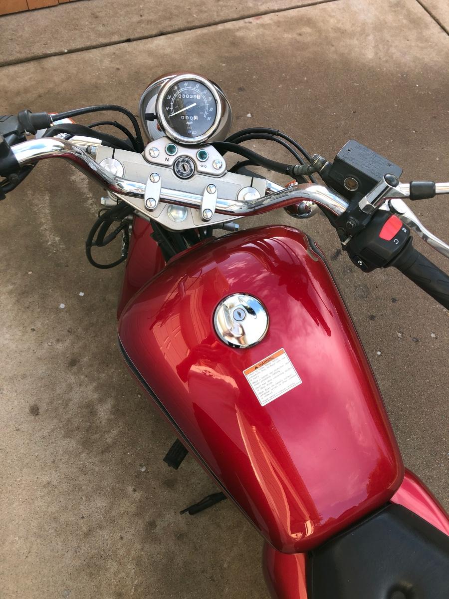 3039 miles. Have had running, but needs a tuneup and was recommended to replace the carburetor. Brand new carburetor included with the purchase. Owner is not exactly sure if anything else is wrong with it. Buying as is without reserve. Appears to have been laid down at one point with denting and scrapes on the fuel tank. Otherwise in good condition. Also comes with leather tassels, new motorcycle cover, new rear taillight and blinkers, and of course, clear title.
