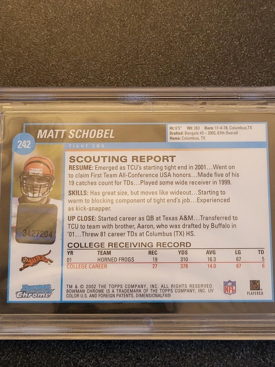 2002 Bowman Matt Schobel Gem Mint 10 Autographed