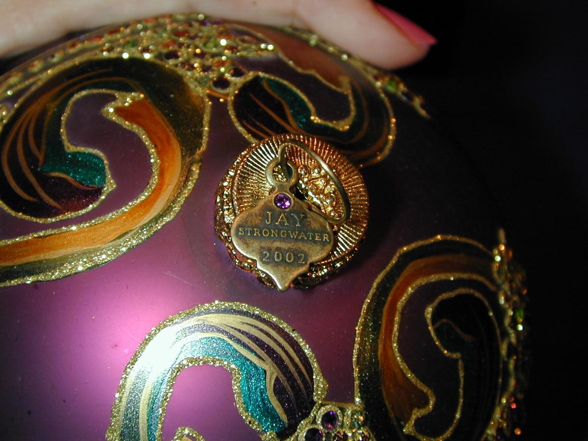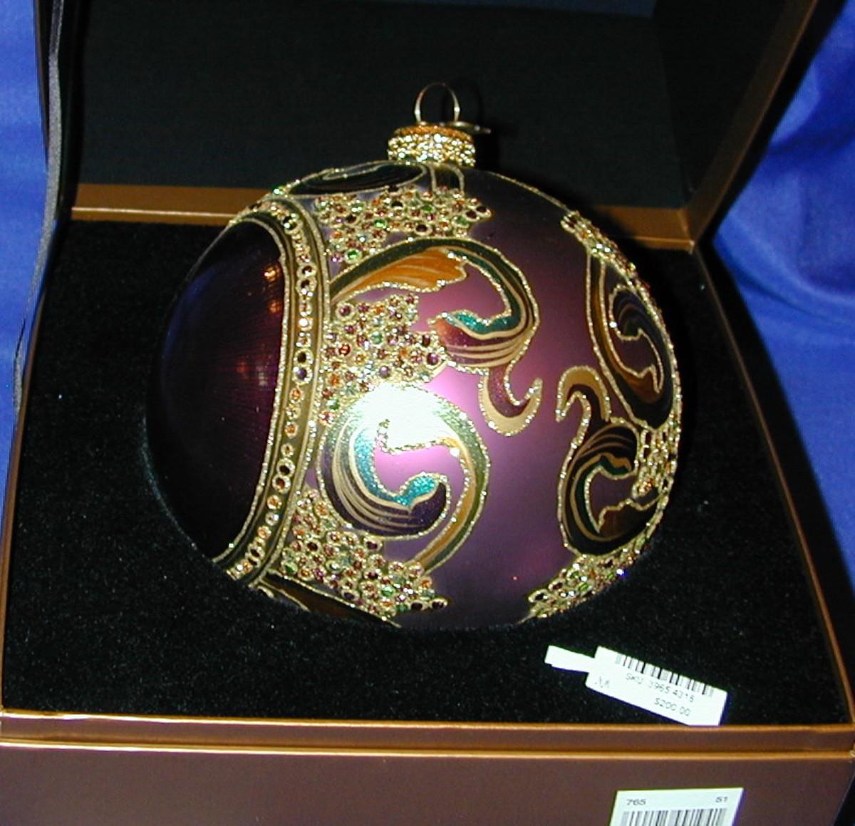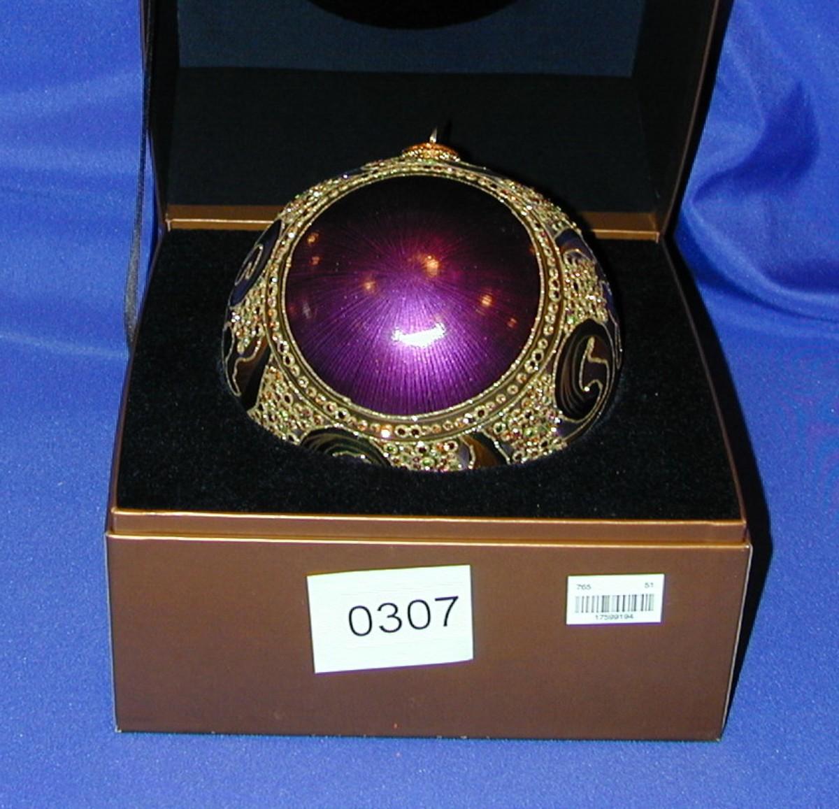 2002 Jay Strongwater Round Jeweled Christmas Ornament Purple Theme In Box Lot 307