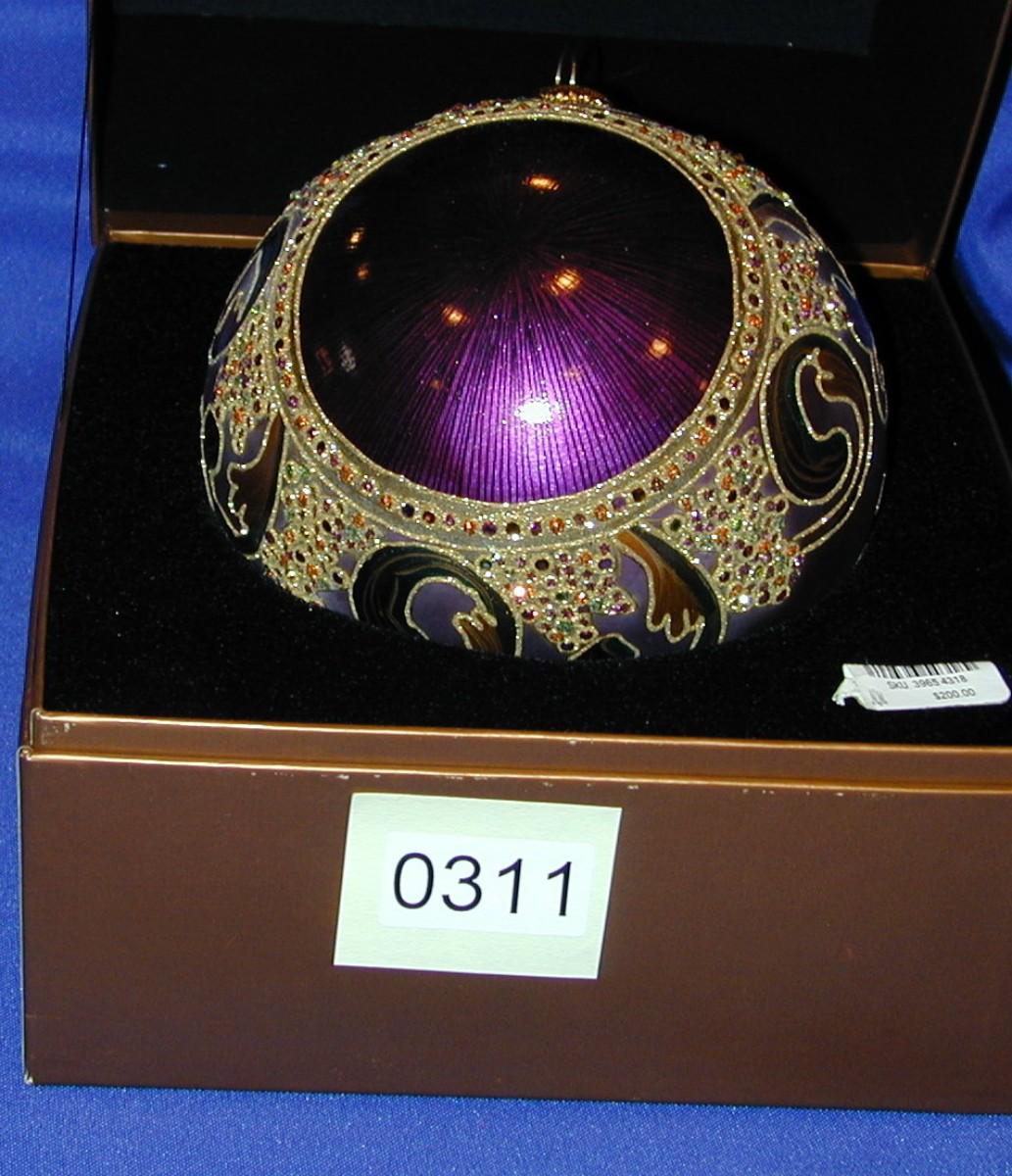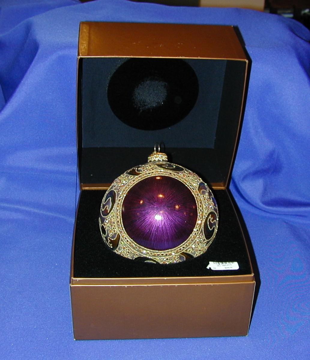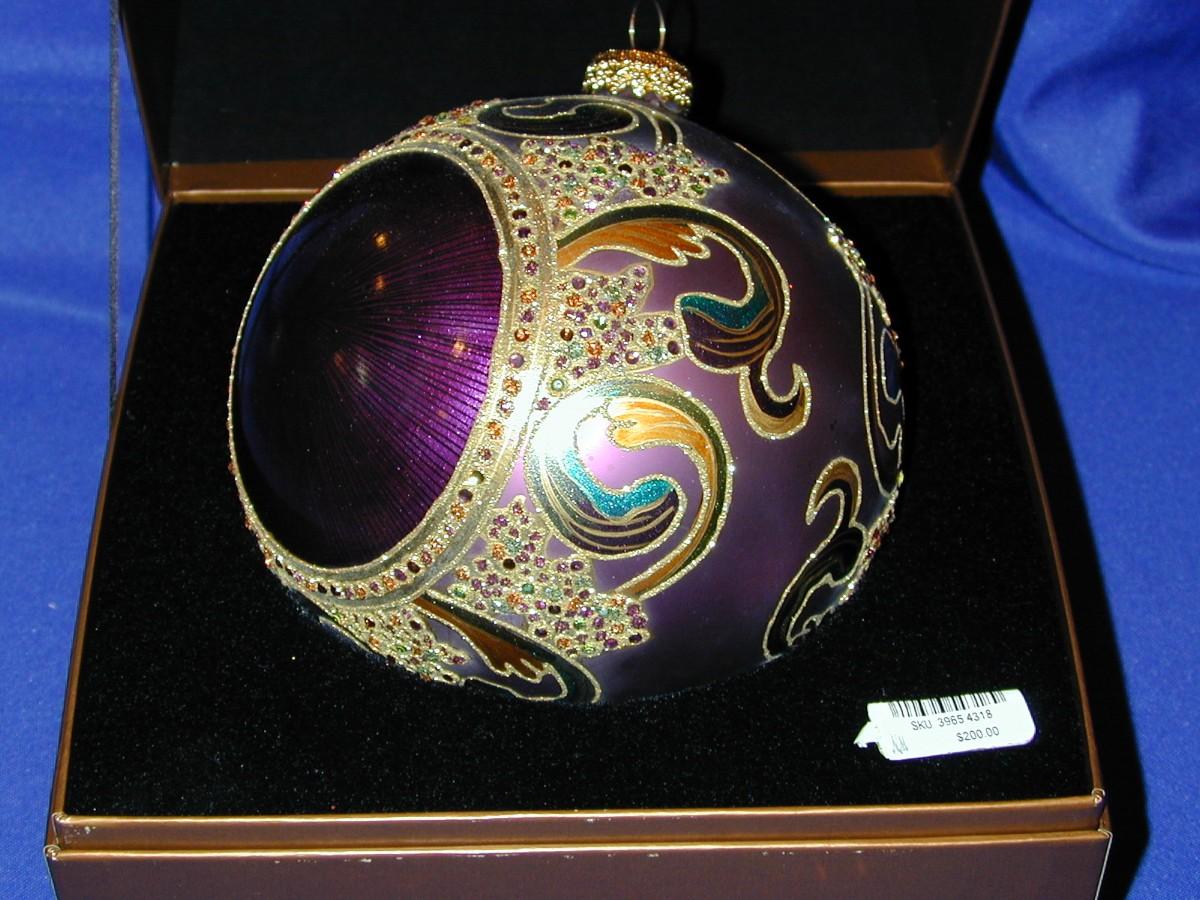 2002 Jay Strongwater Round Jeweled Christmas Ornament Purple Theme In Box Lot 311