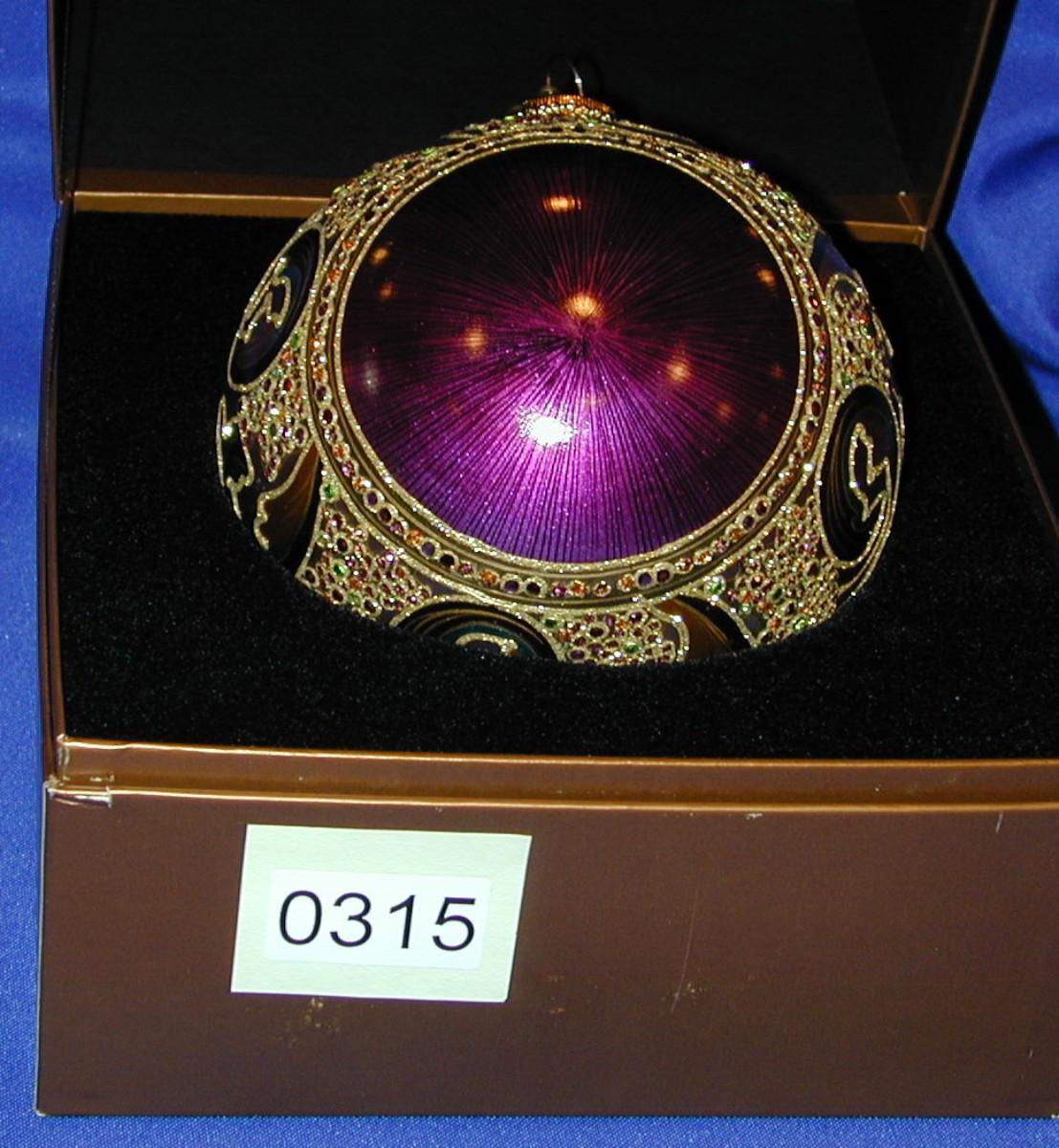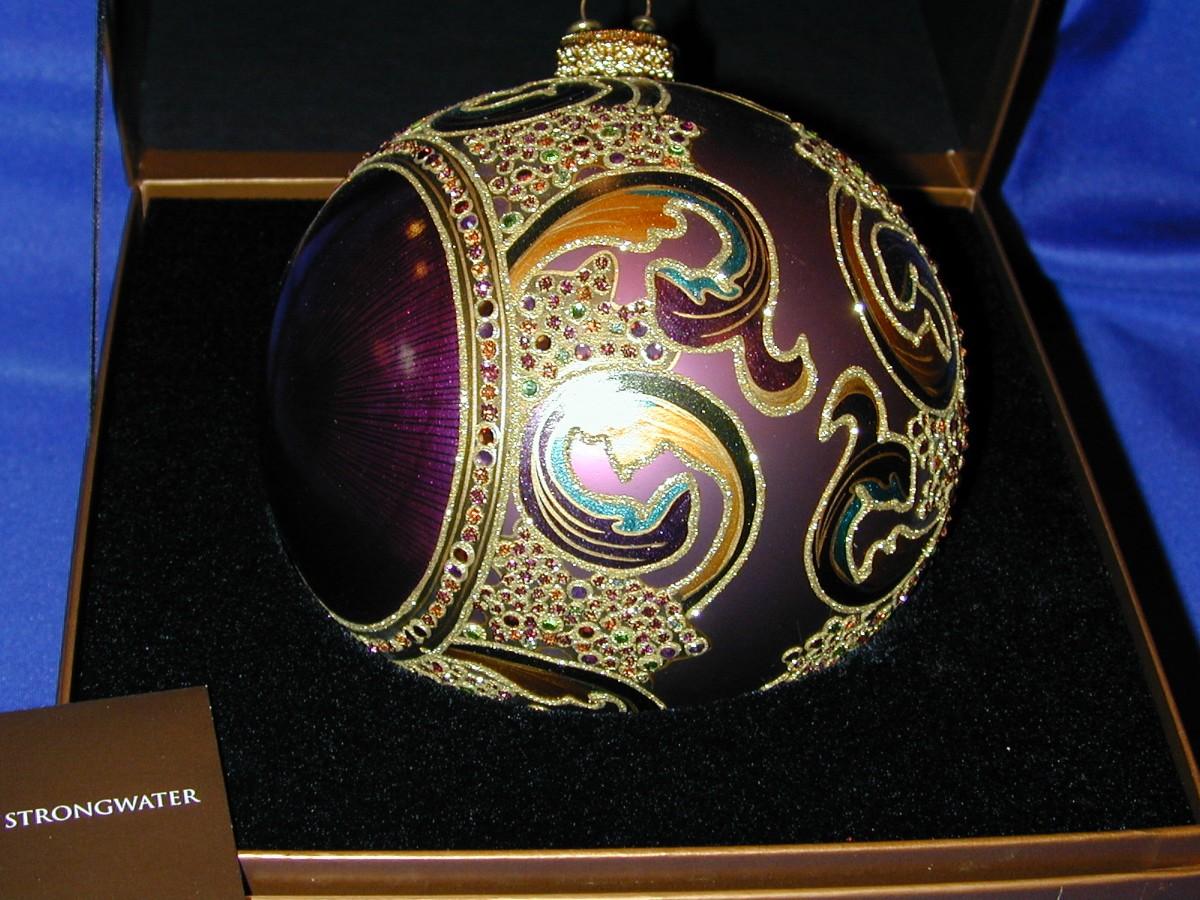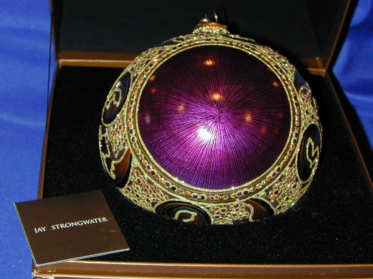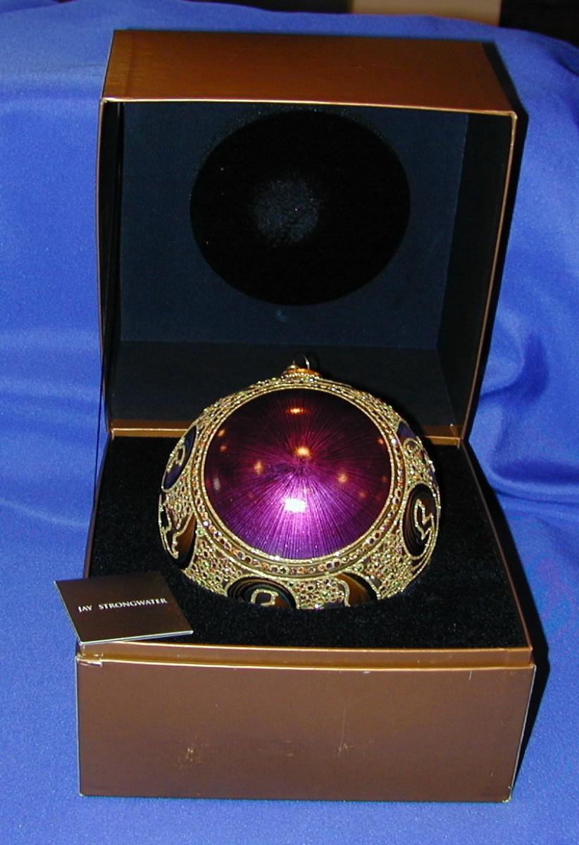2002 Jay Strongwater Round Jeweled Christmas Ornament Purple Theme In Box Lot 315
