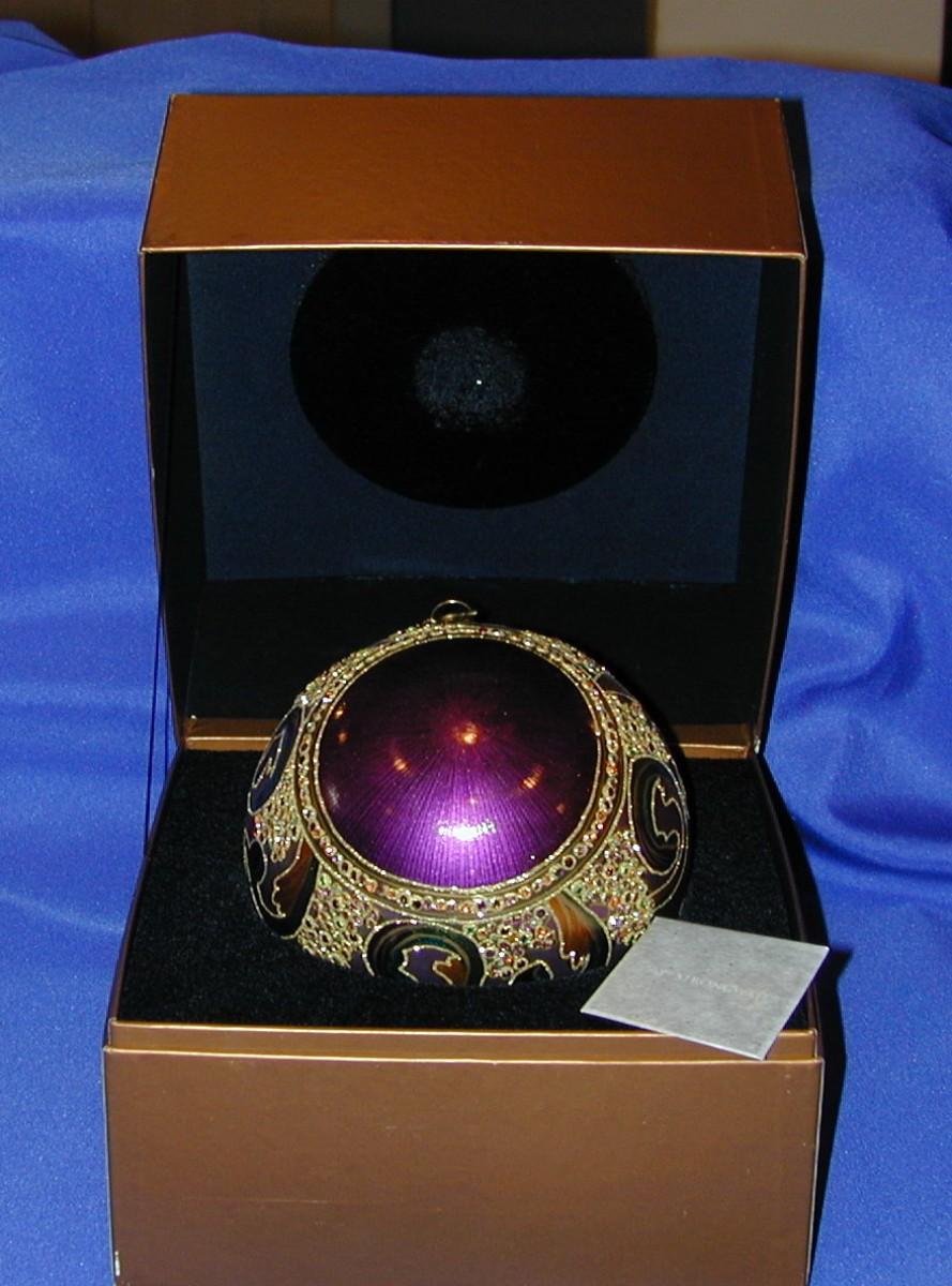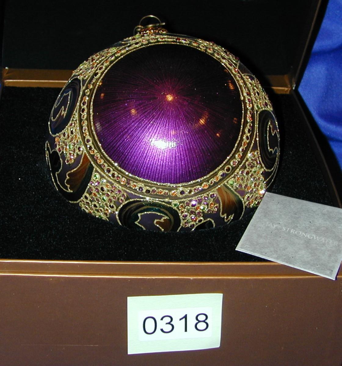 2002 Jay Strongwater Round Jeweled Christmas Ornament Purple Theme In Box Lot 318