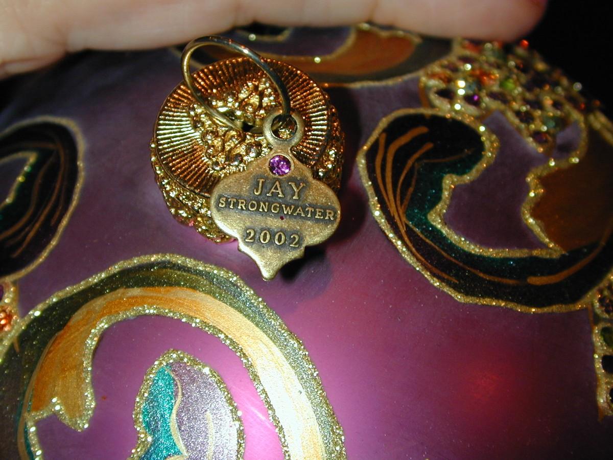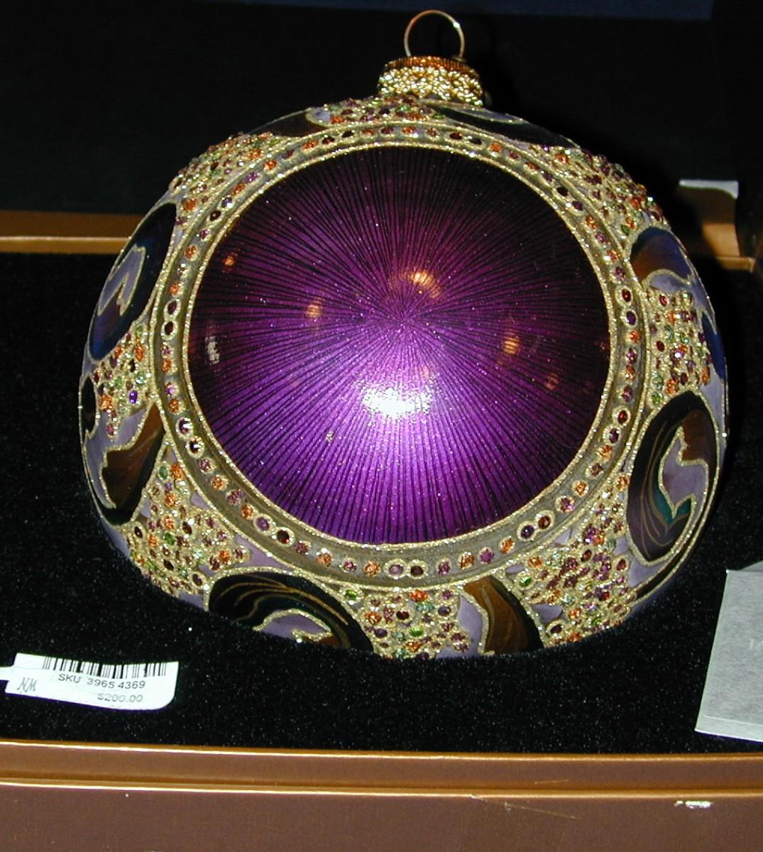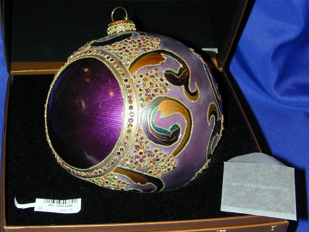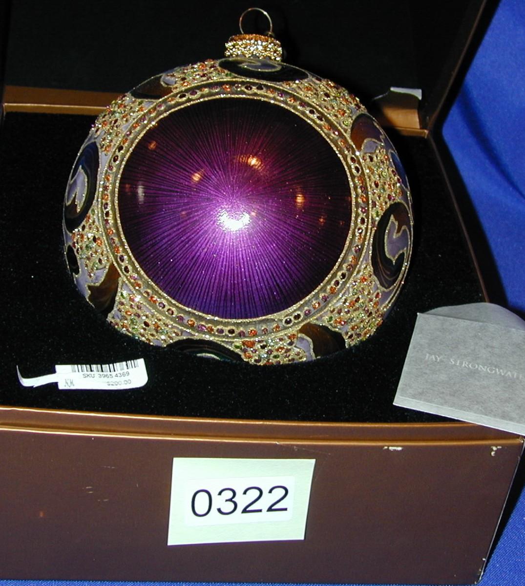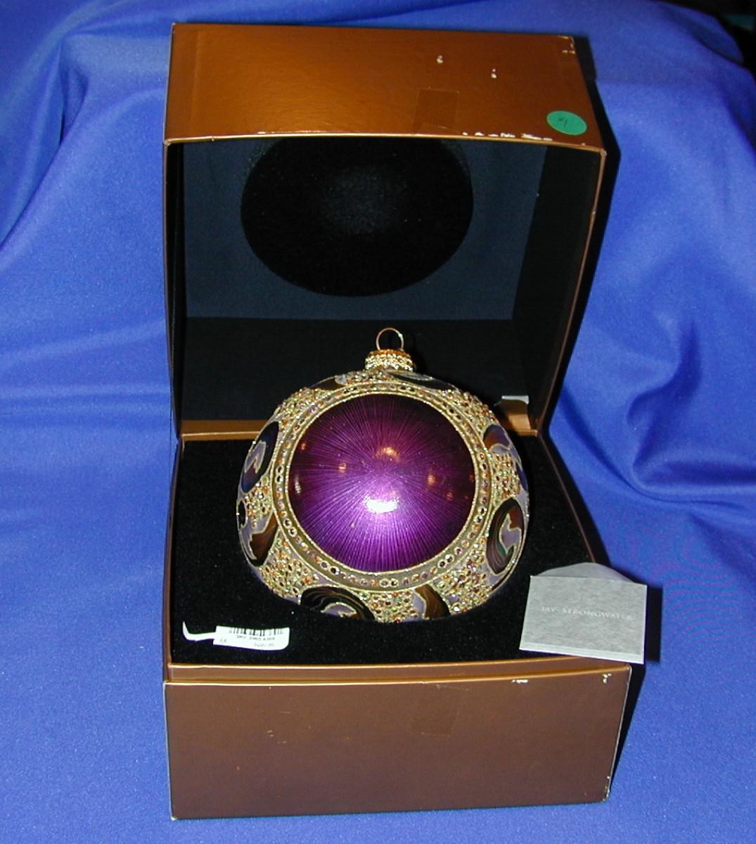 2002 Jay Strongwater Round Jeweled Christmas Ornament Purple Theme In Box Lot 322