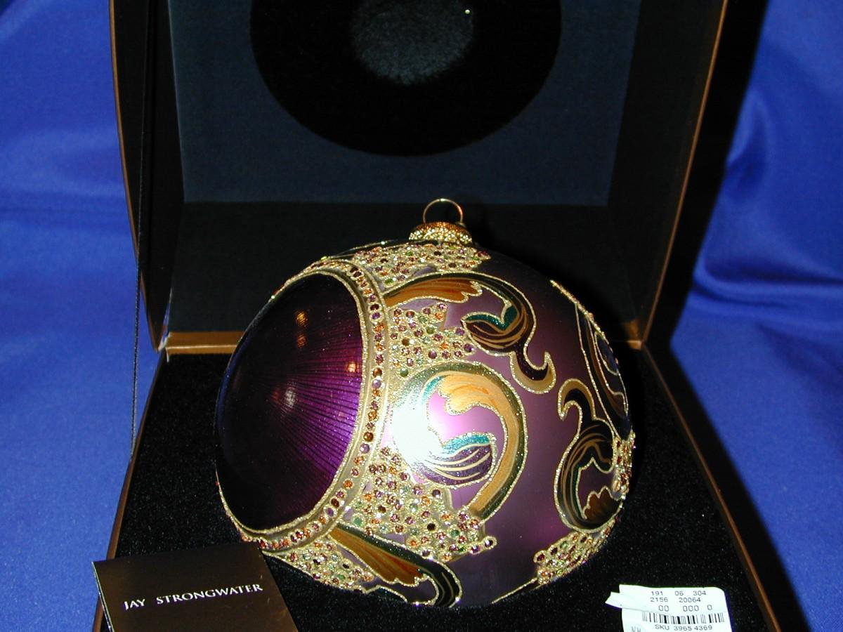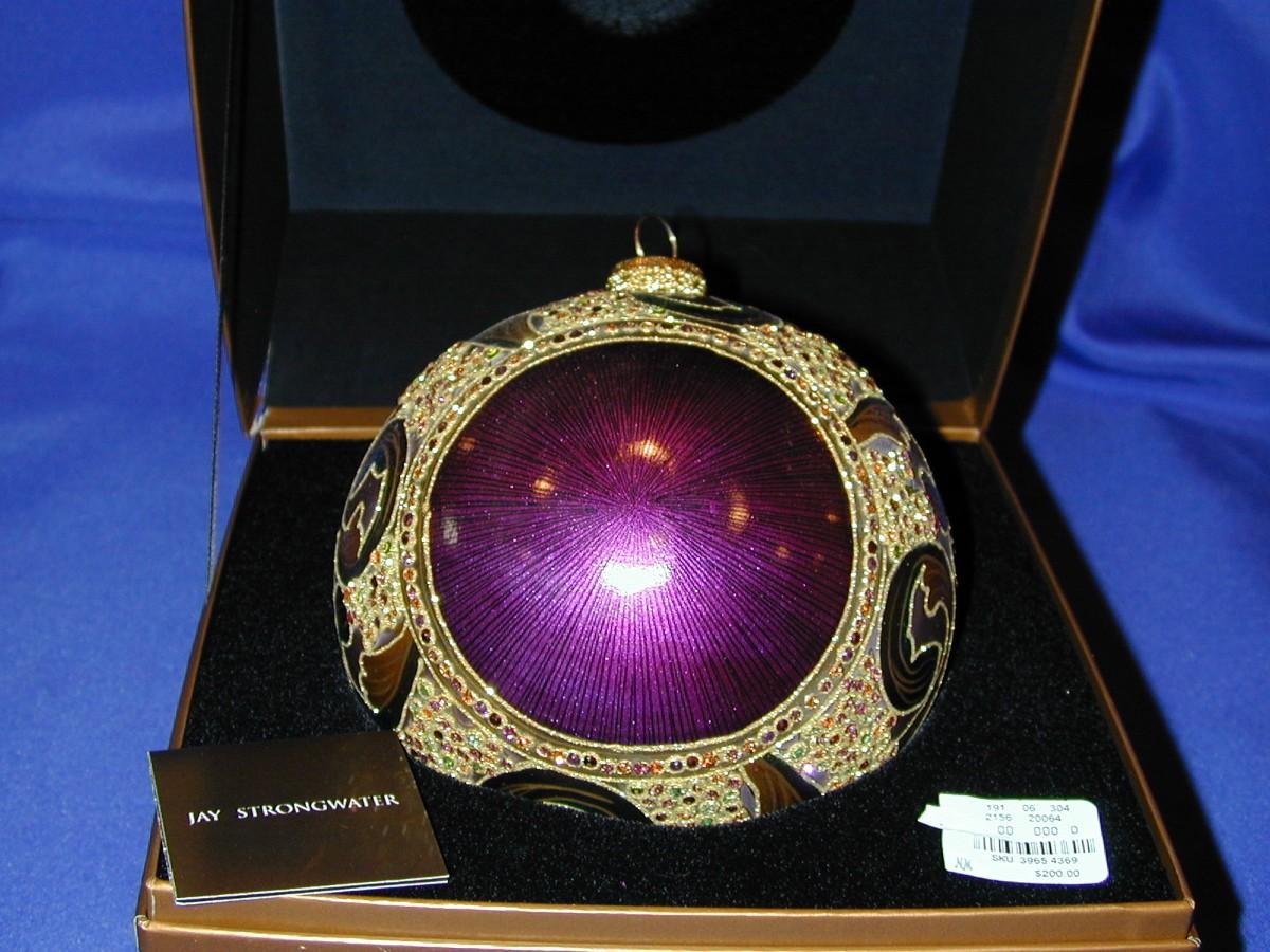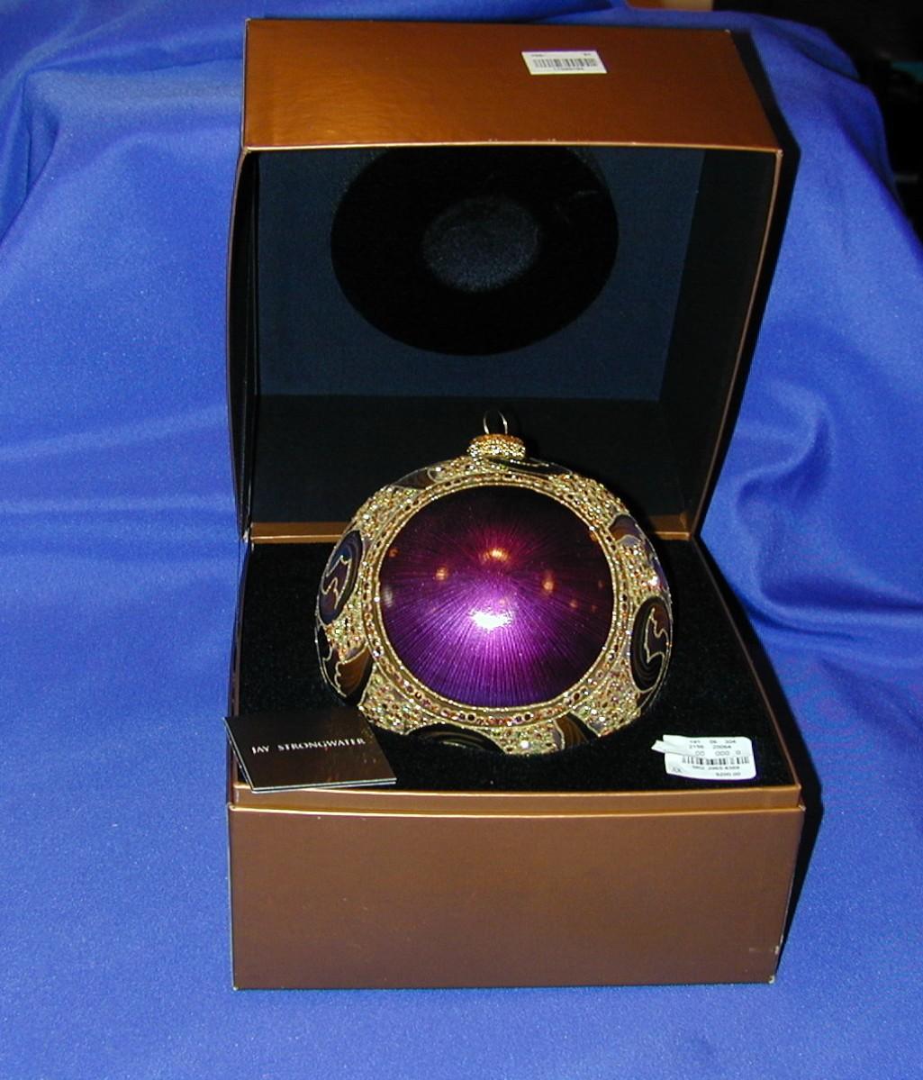 2002 Jay Strongwater Round Jeweled Christmas Ornament Purple Theme In Box Lot 324