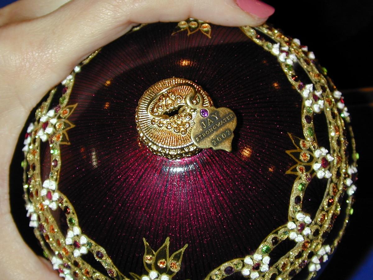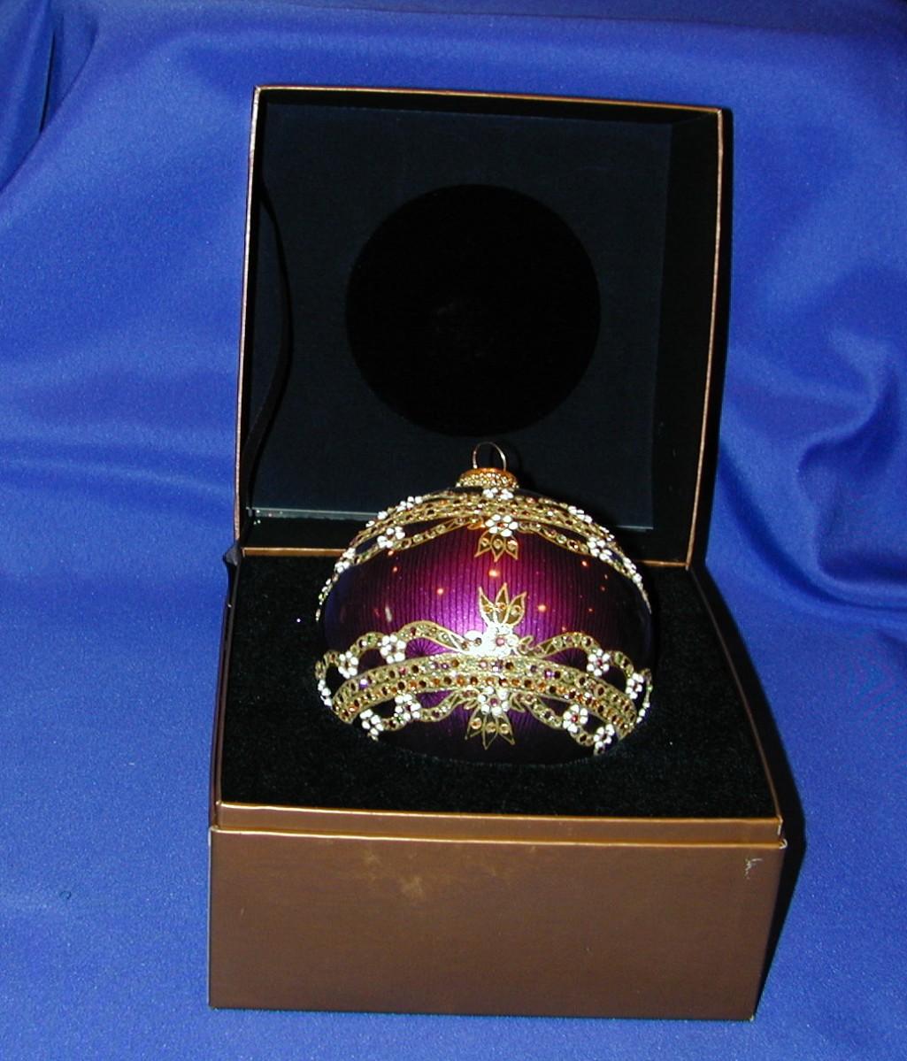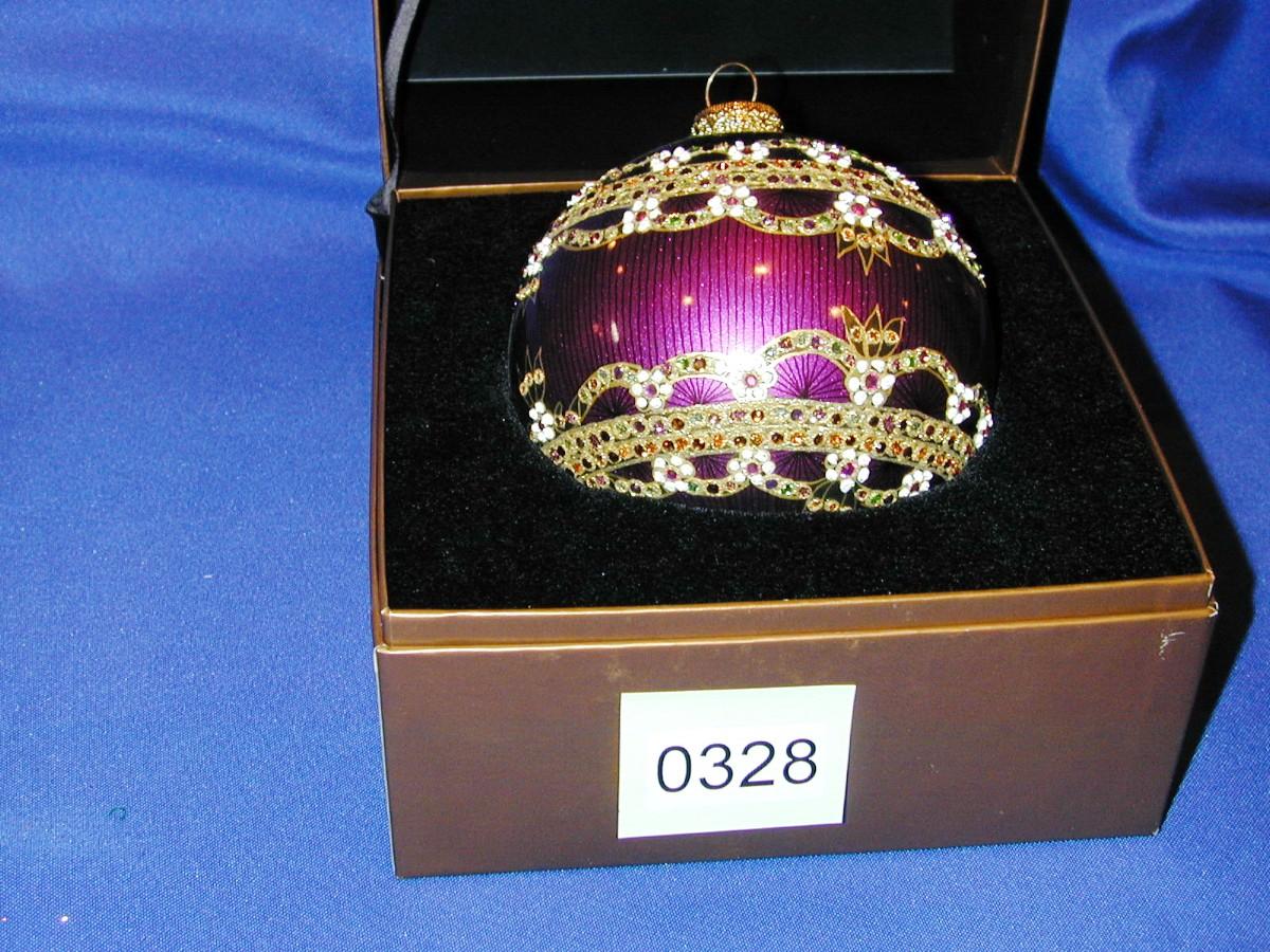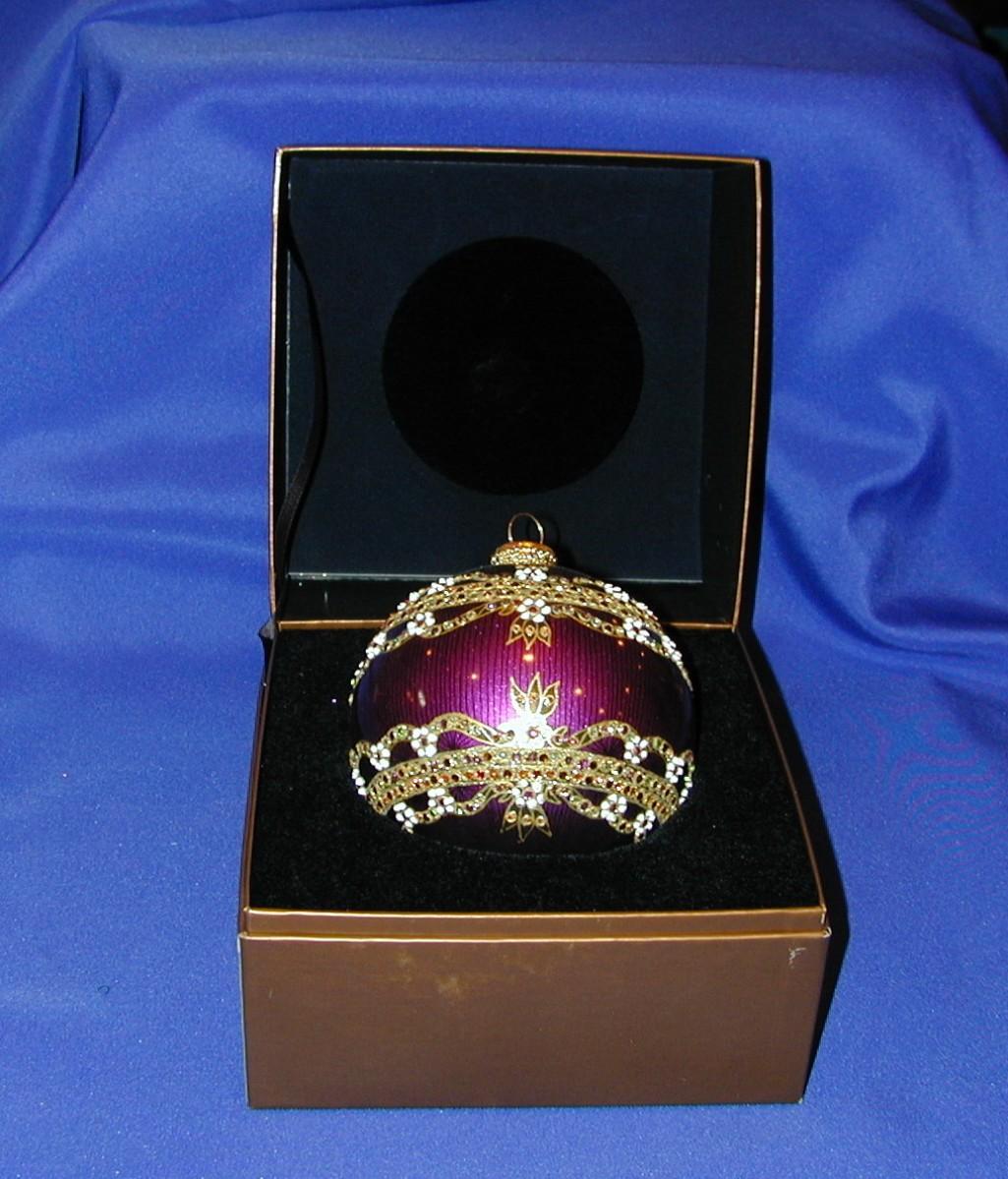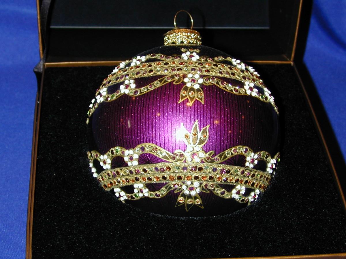 2002 Jay Strongwater Round Jeweled Christmas Ornament Purple Theme In Box Lot 328