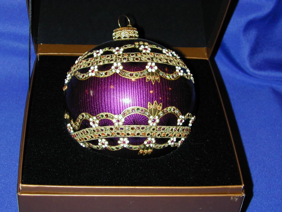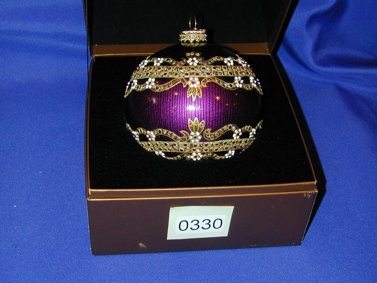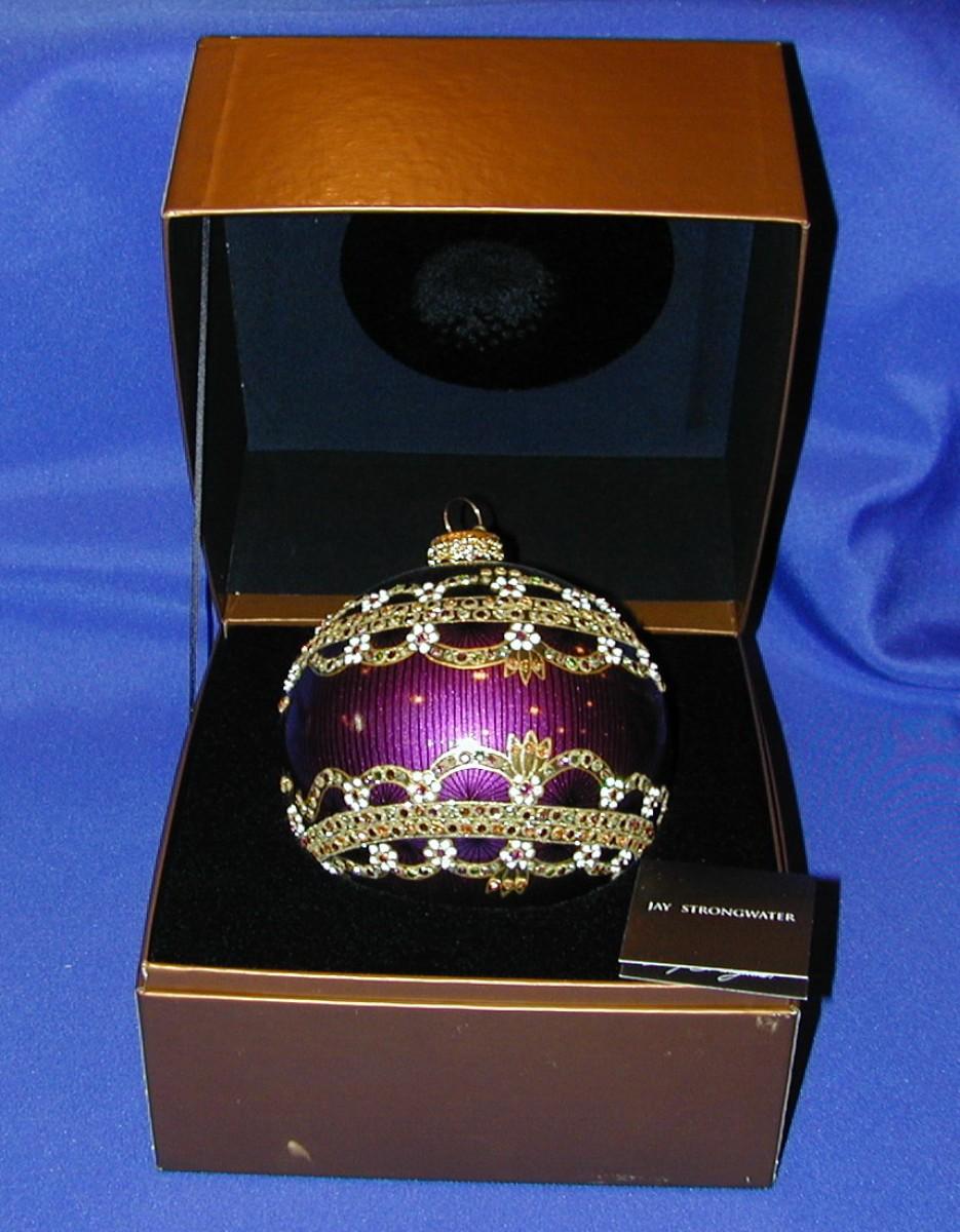 2002 Jay Strongwater Round Jeweled Christmas Ornament Purple Theme In Box Lot 330