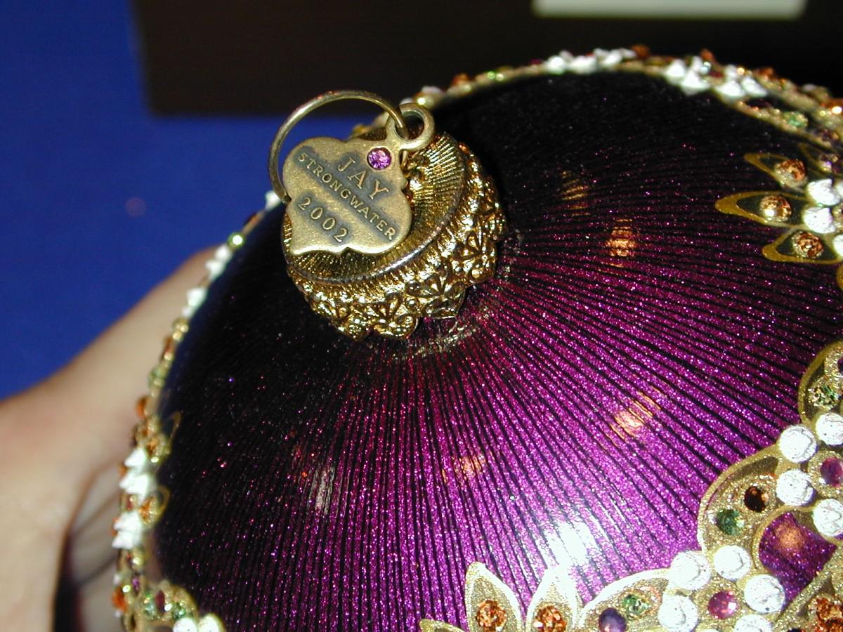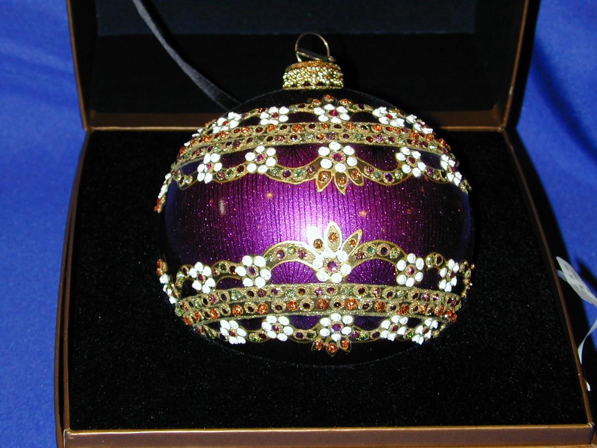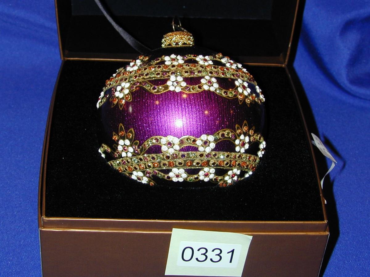 2002 Jay Strongwater Round Jeweled Christmas Ornament Purple Theme In Box Lot 331