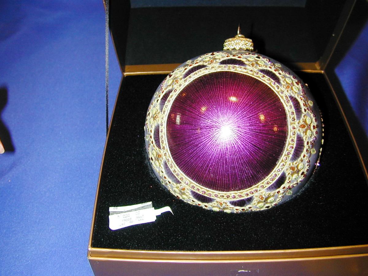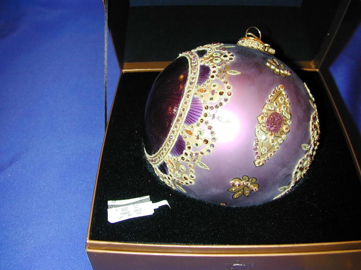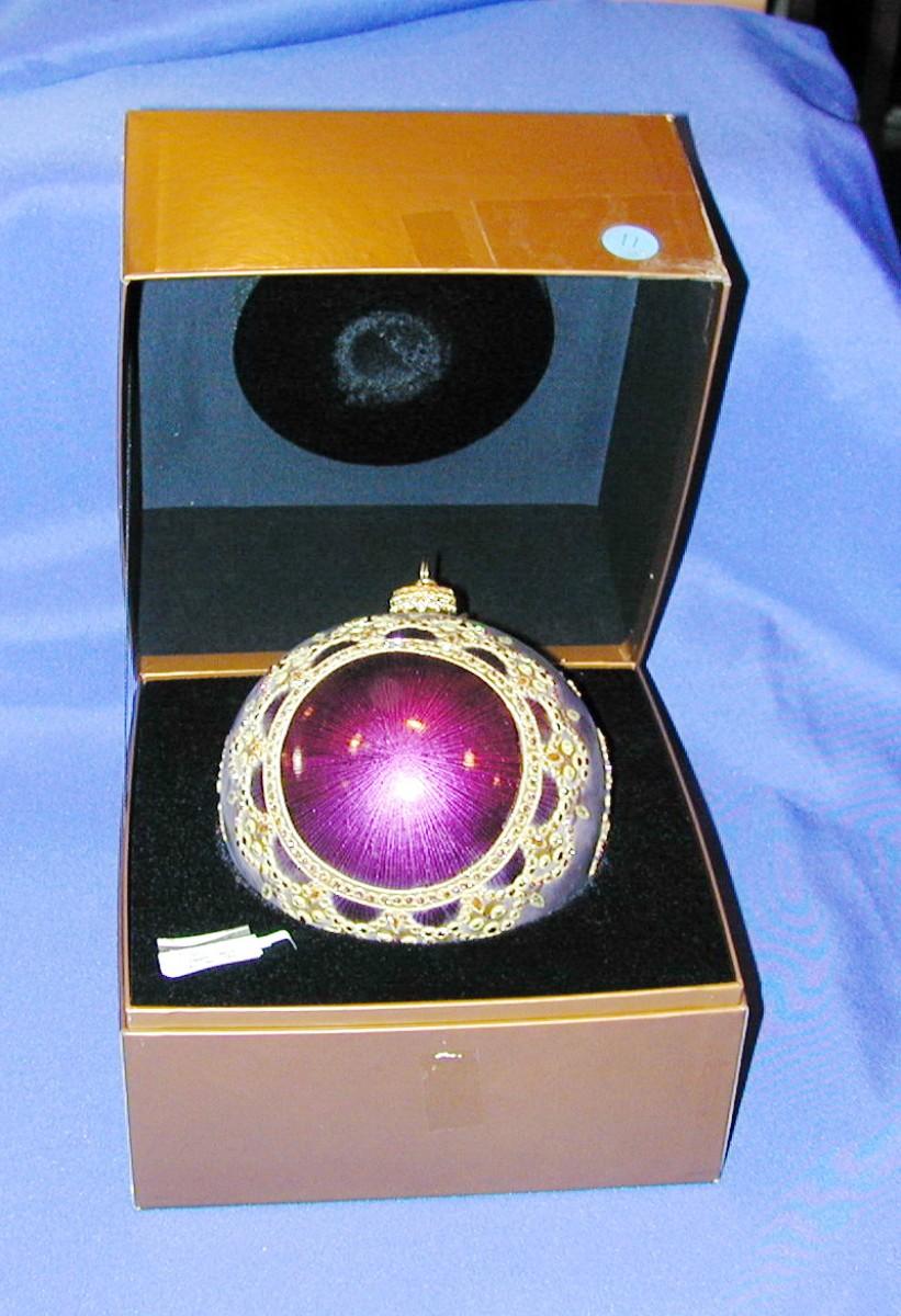 2002 Jay Strongwater Round Jeweled Christmas Ornament Purple Theme In Box Lot 344