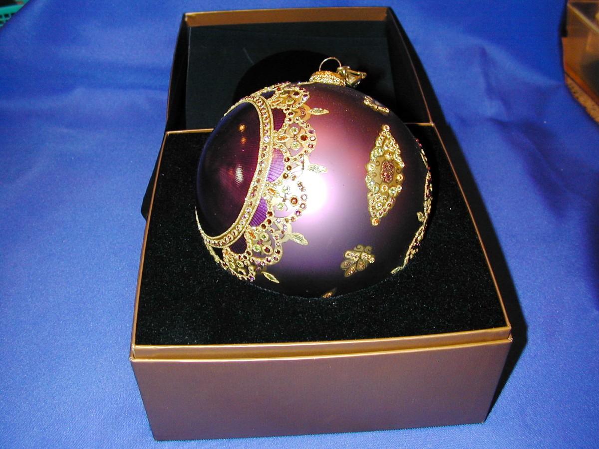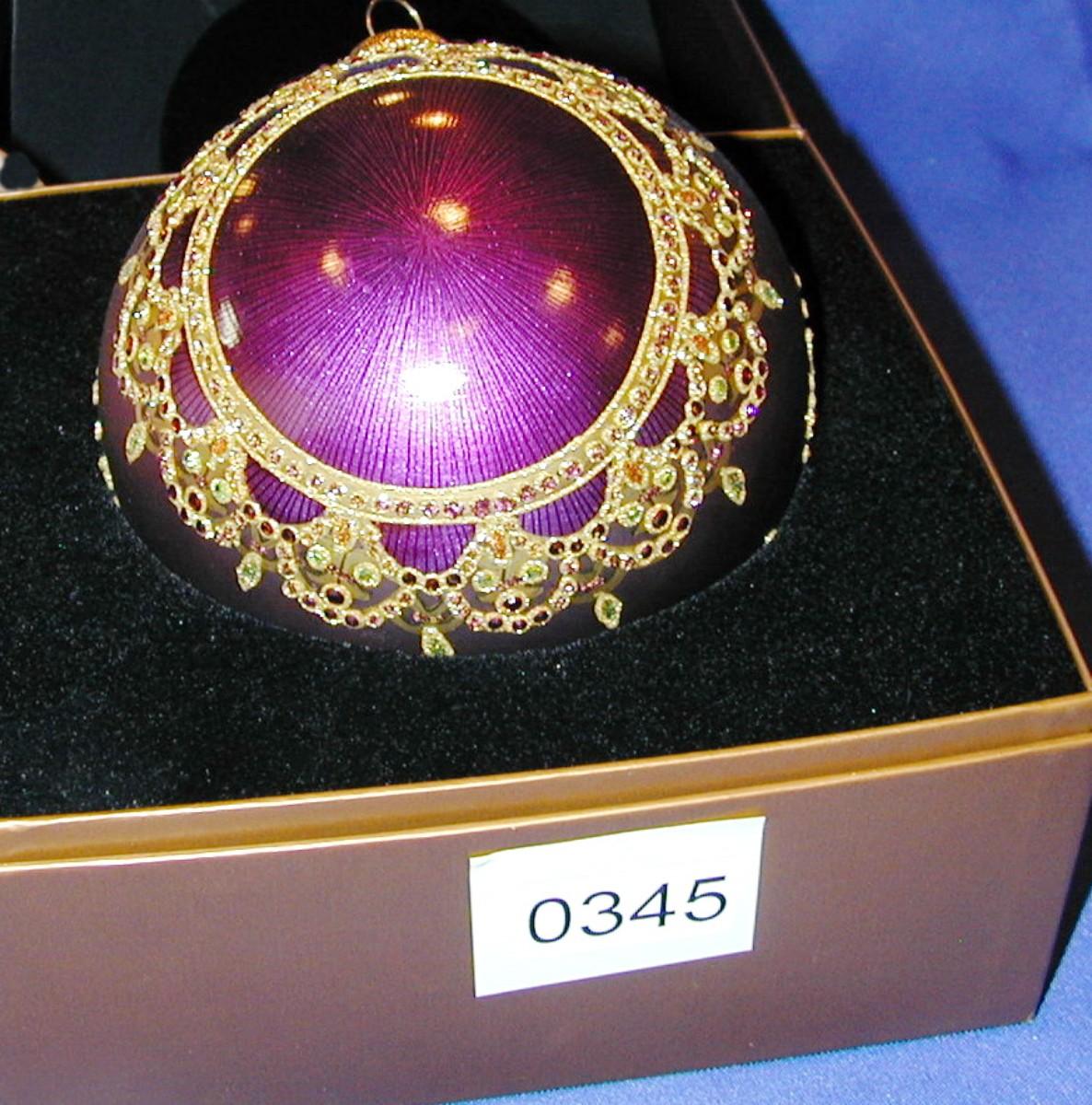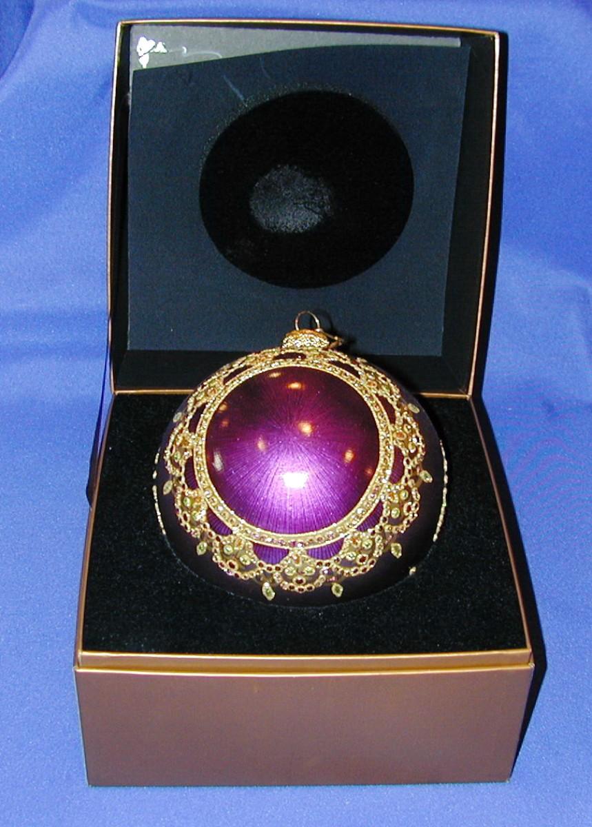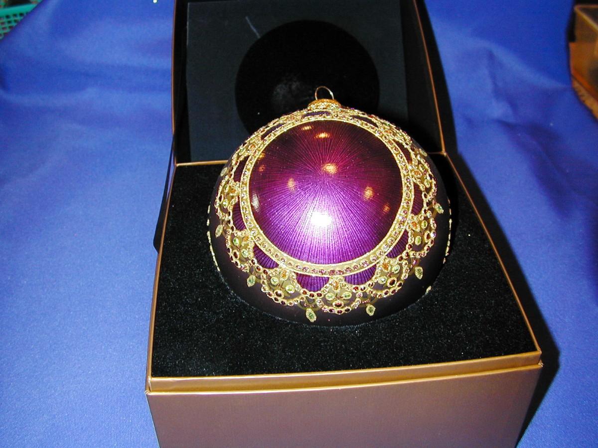 2002 Jay Strongwater Round Jeweled Christmas Ornament Purple Theme In Box Lot 345