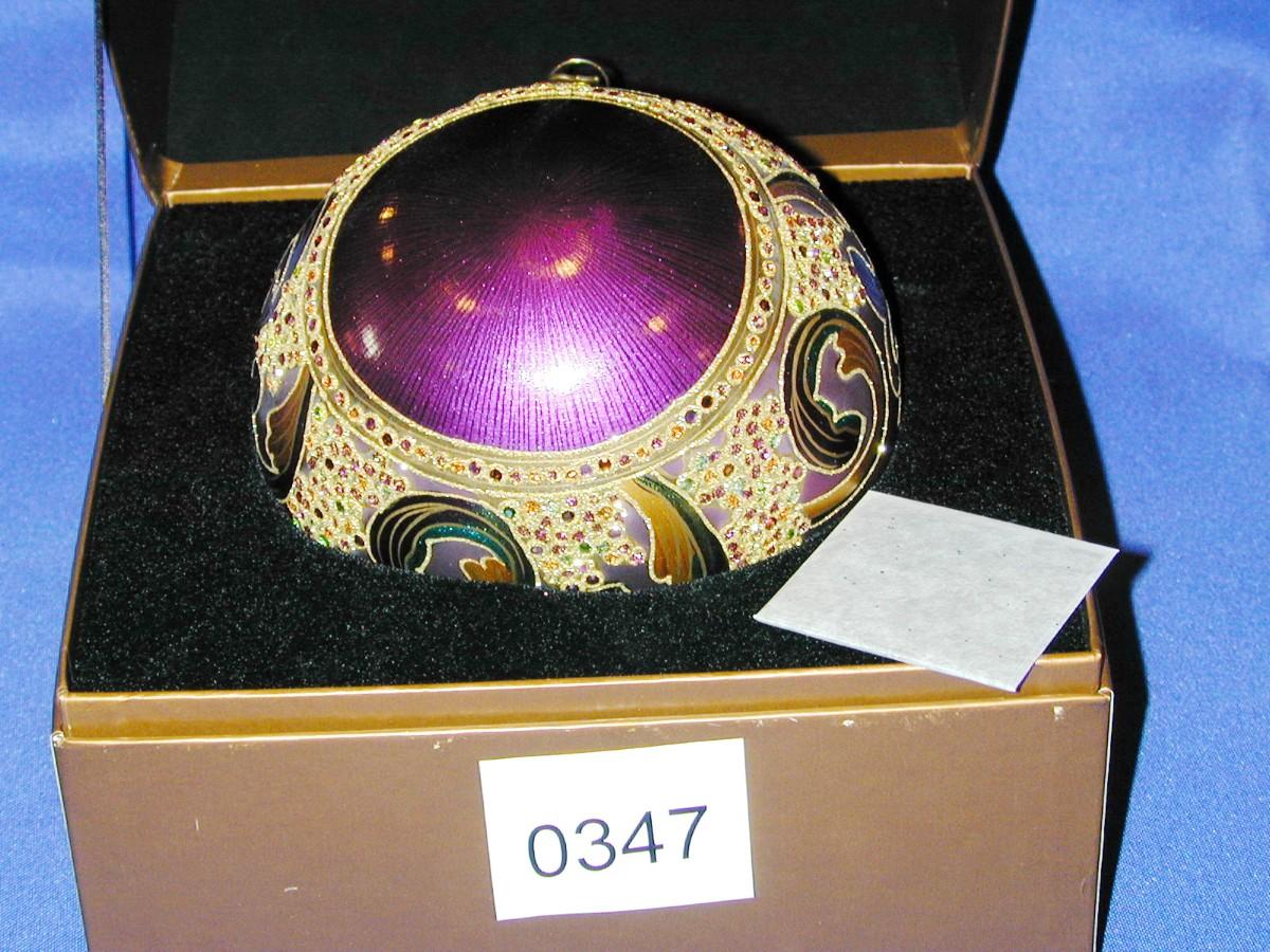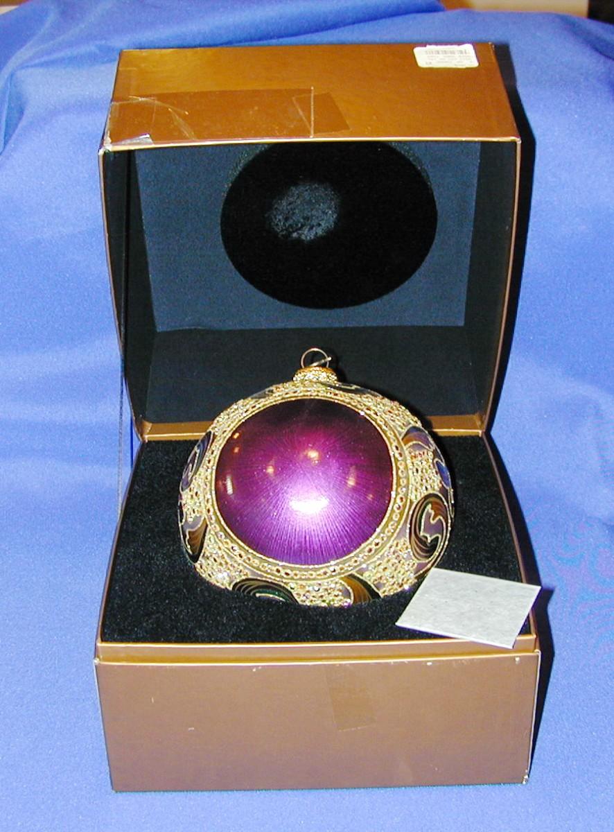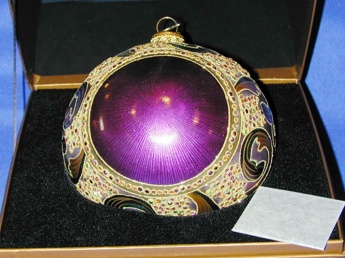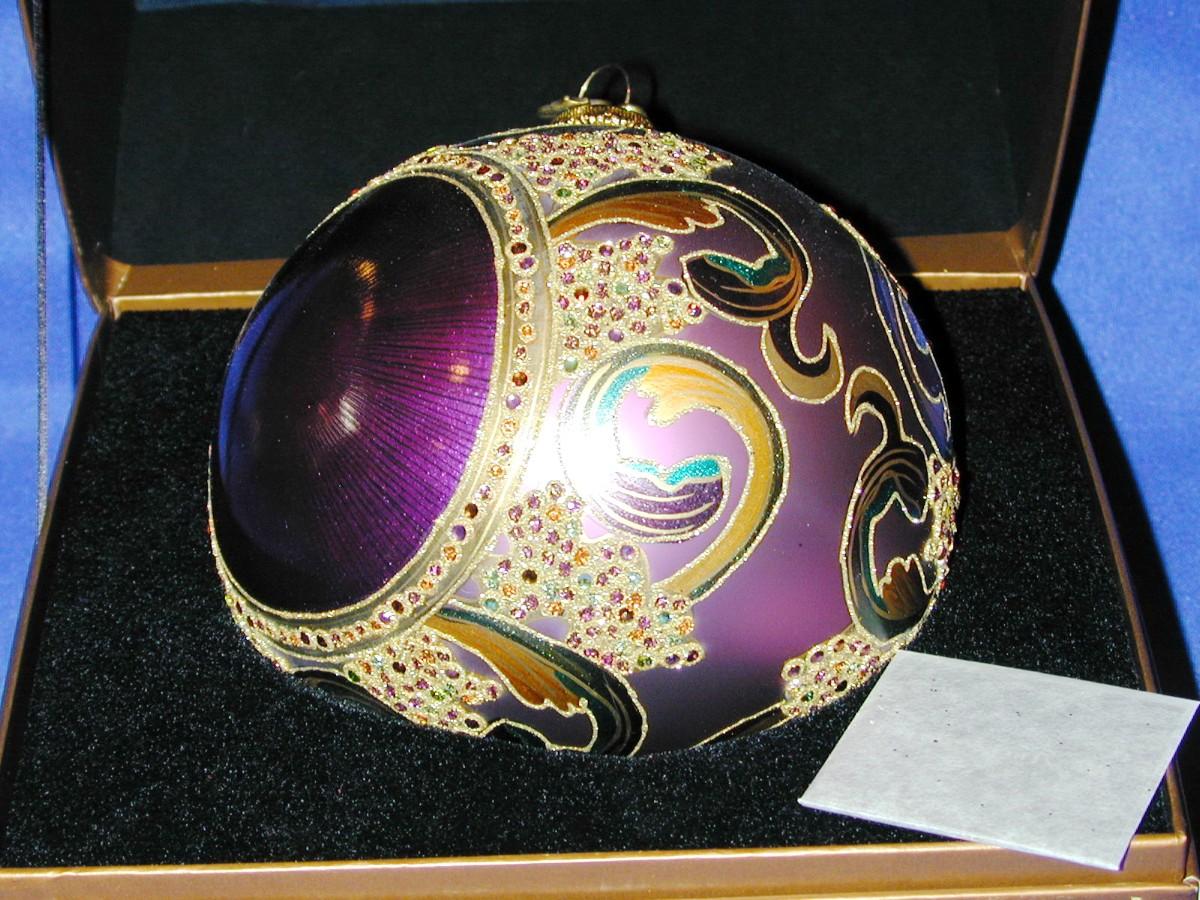 2002 Jay Strongwater Round Jeweled Christmas Ornament Purple Theme In Box Lot 347