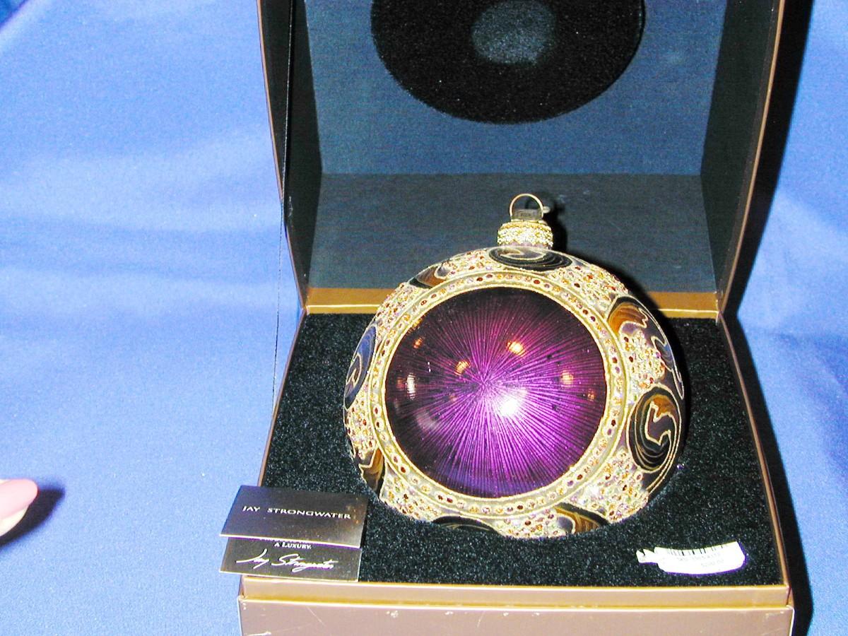 2002 Jay Strongwater Round Jeweled Christmas Ornament Purple Theme In Box Lot 351