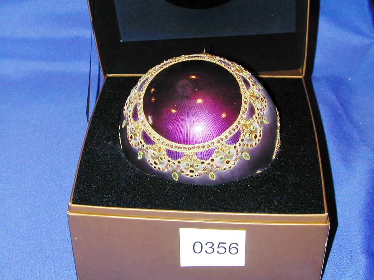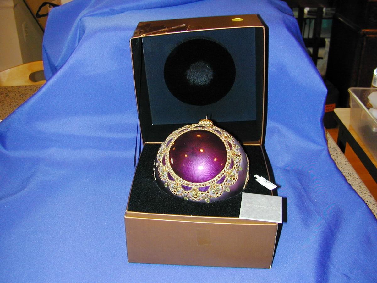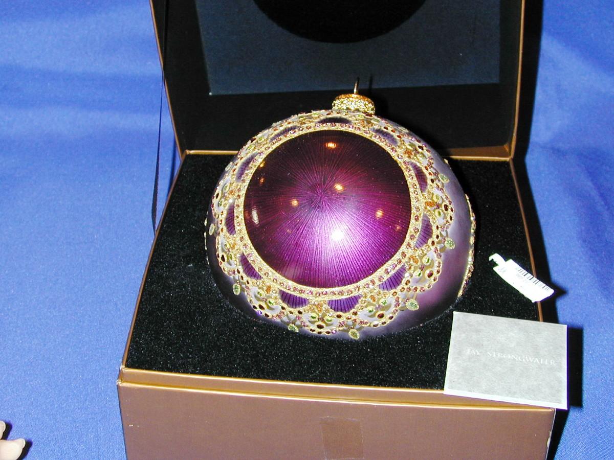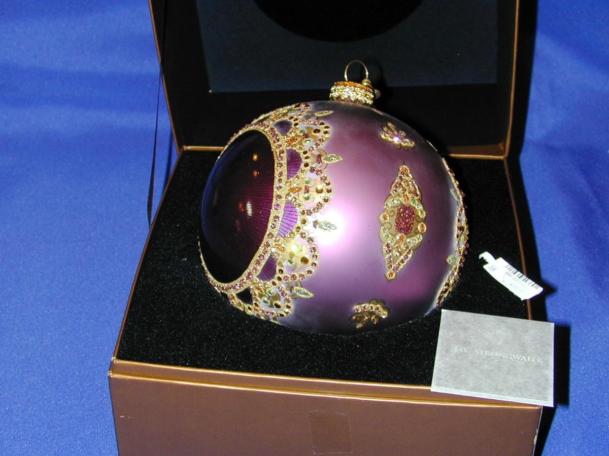 2002 Jay Strongwater Round Jeweled Christmas Ornament Purple Theme In Box Lot 356