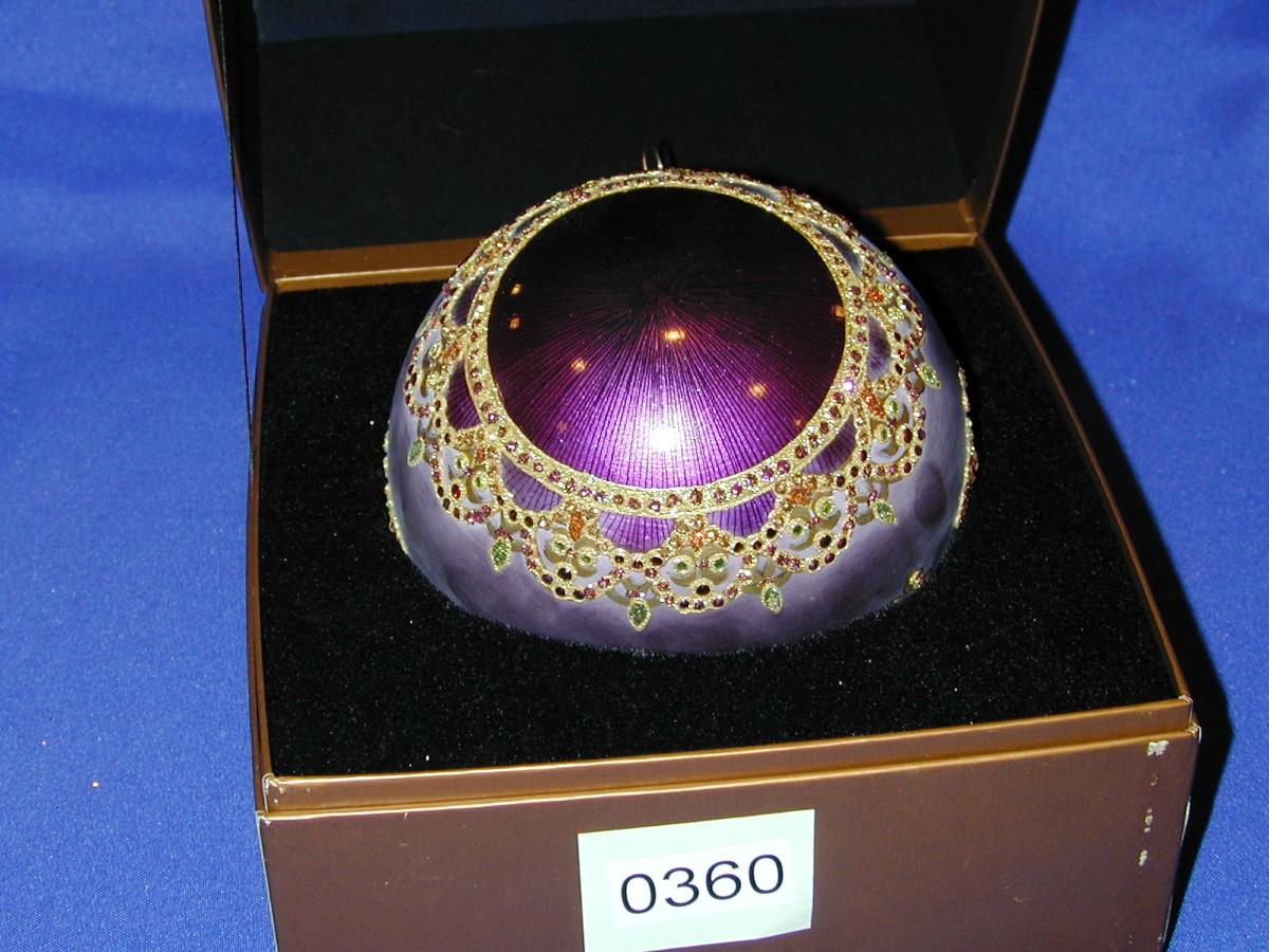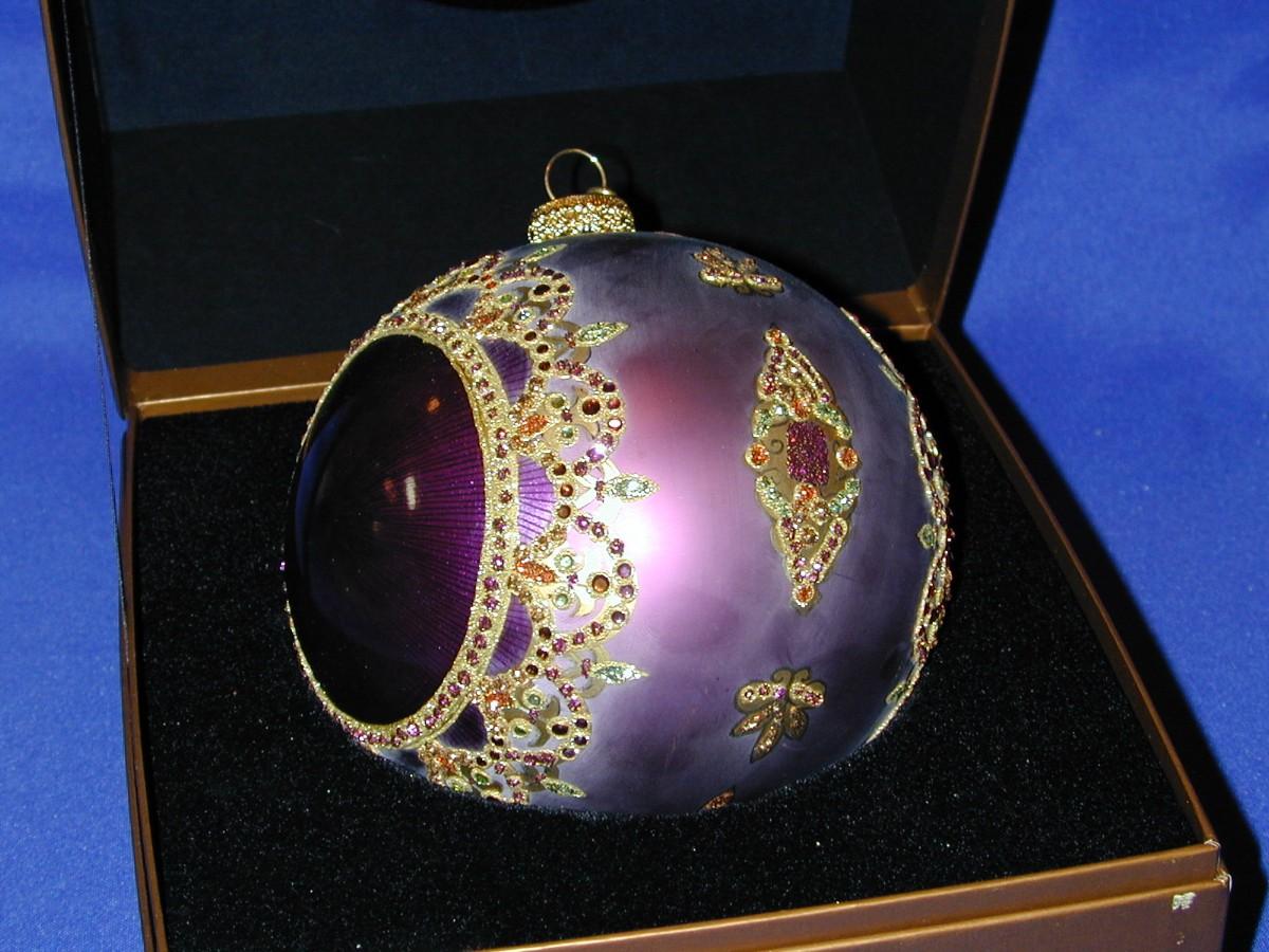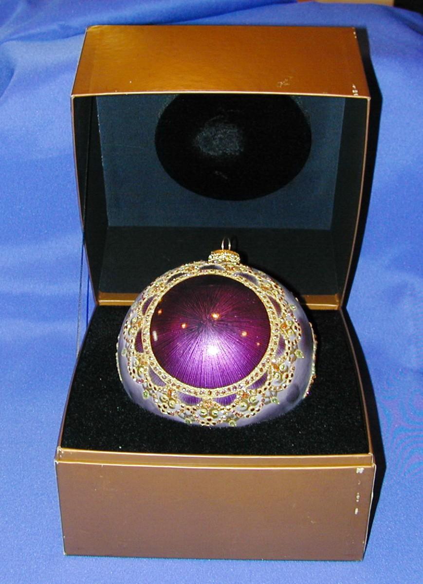 2002 Jay Strongwater Round Jeweled Christmas Ornament Purple Theme In Box Lot 360