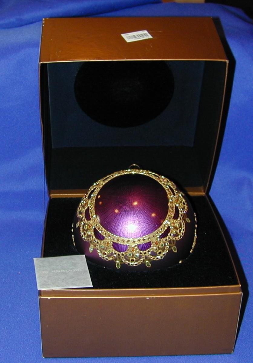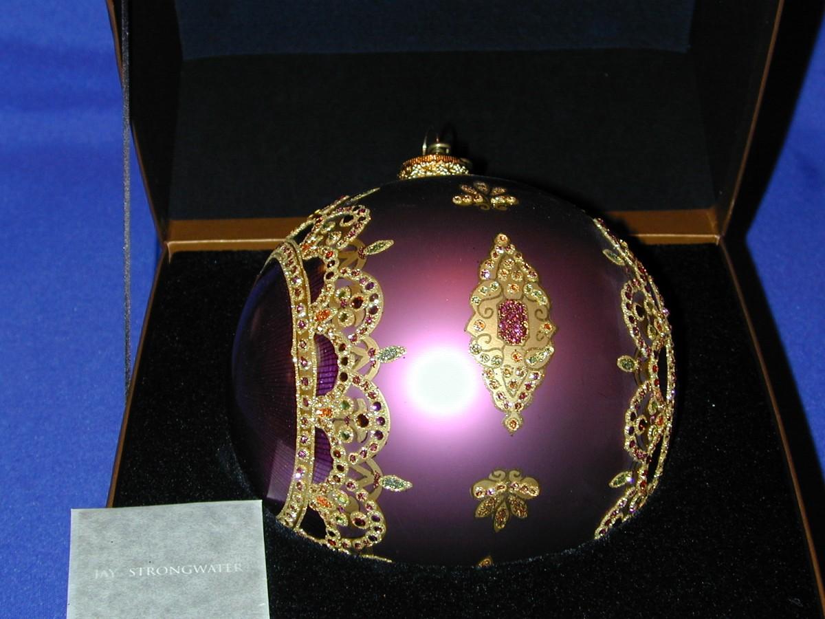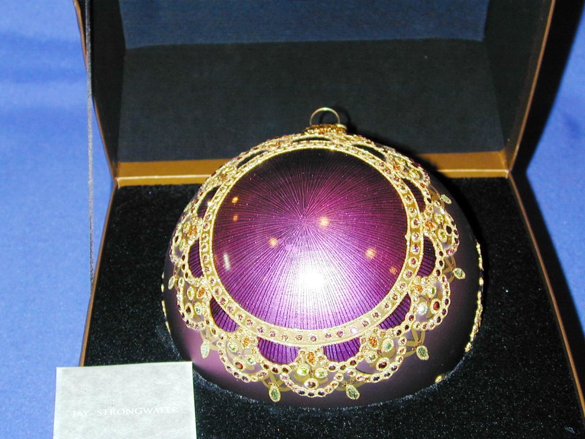 2002 Jay Strongwater Round Jeweled Christmas Ornament Purple Theme In Box Lot 364