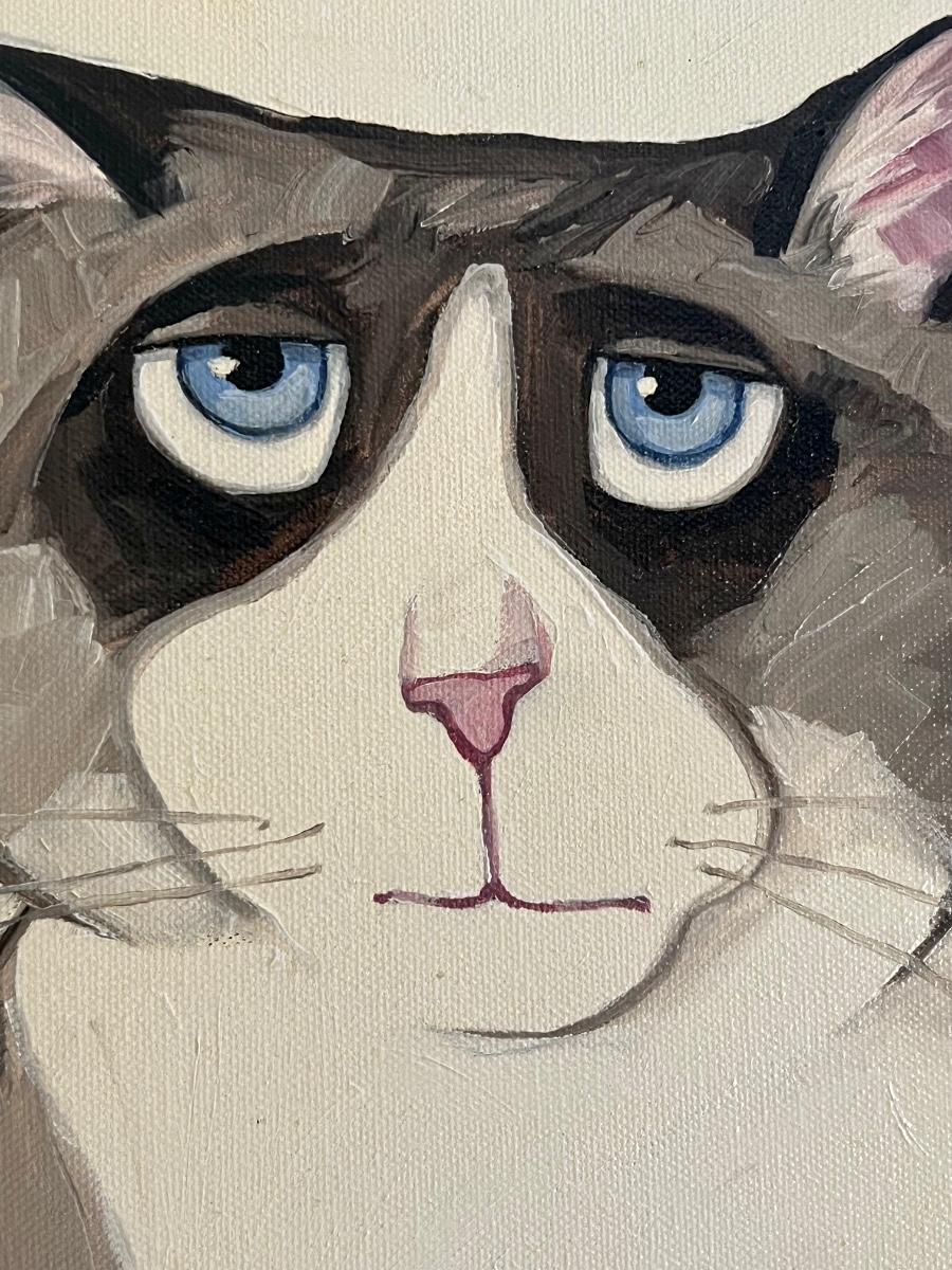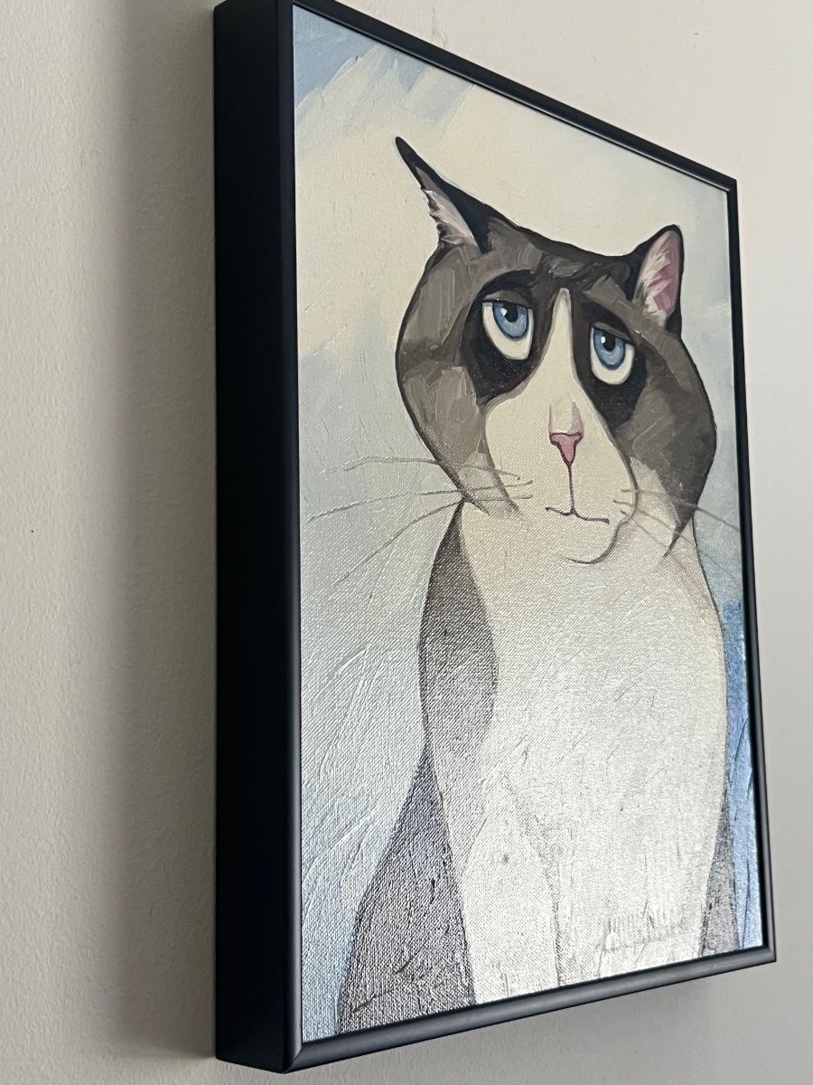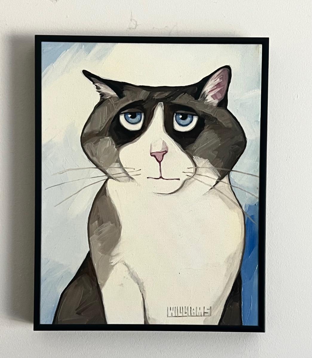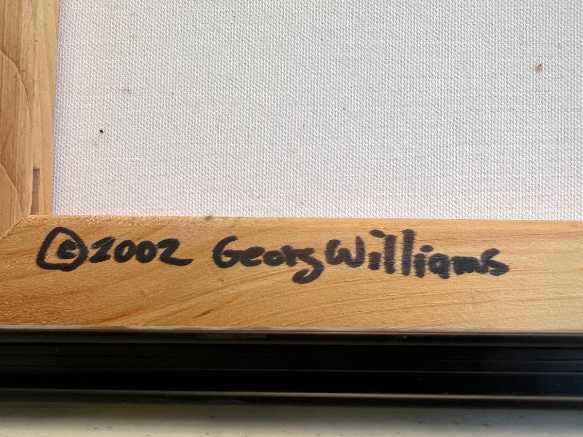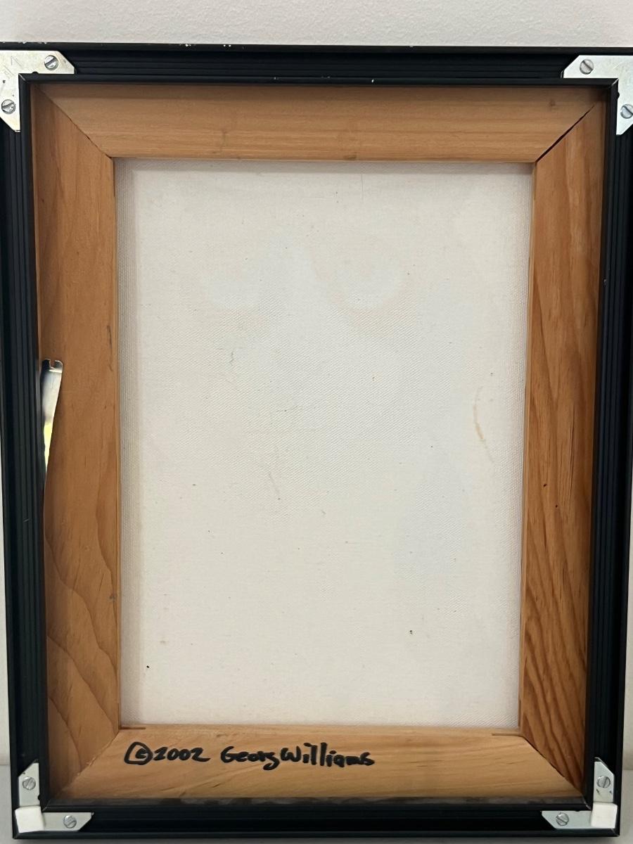 Canvas cat painting signed by Georg Williams measures 14 1/2 inches tall , 11 1/2 inches wide and 1 1/2 inches deep.