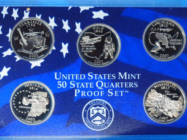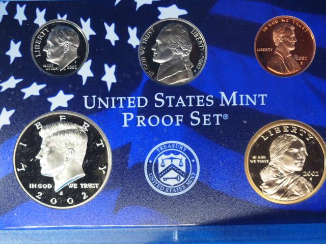 11 coin 2002 Mint Proof set From The San Francisco Mint. Included are one Lincoln Cent One Jefferson Nickel Roosevelt dime a Kennedy half and a golden one Dollar Sacajawea. Indian Nation You also get the the 5 Brilliant proof Quarters and the COA and original packaging