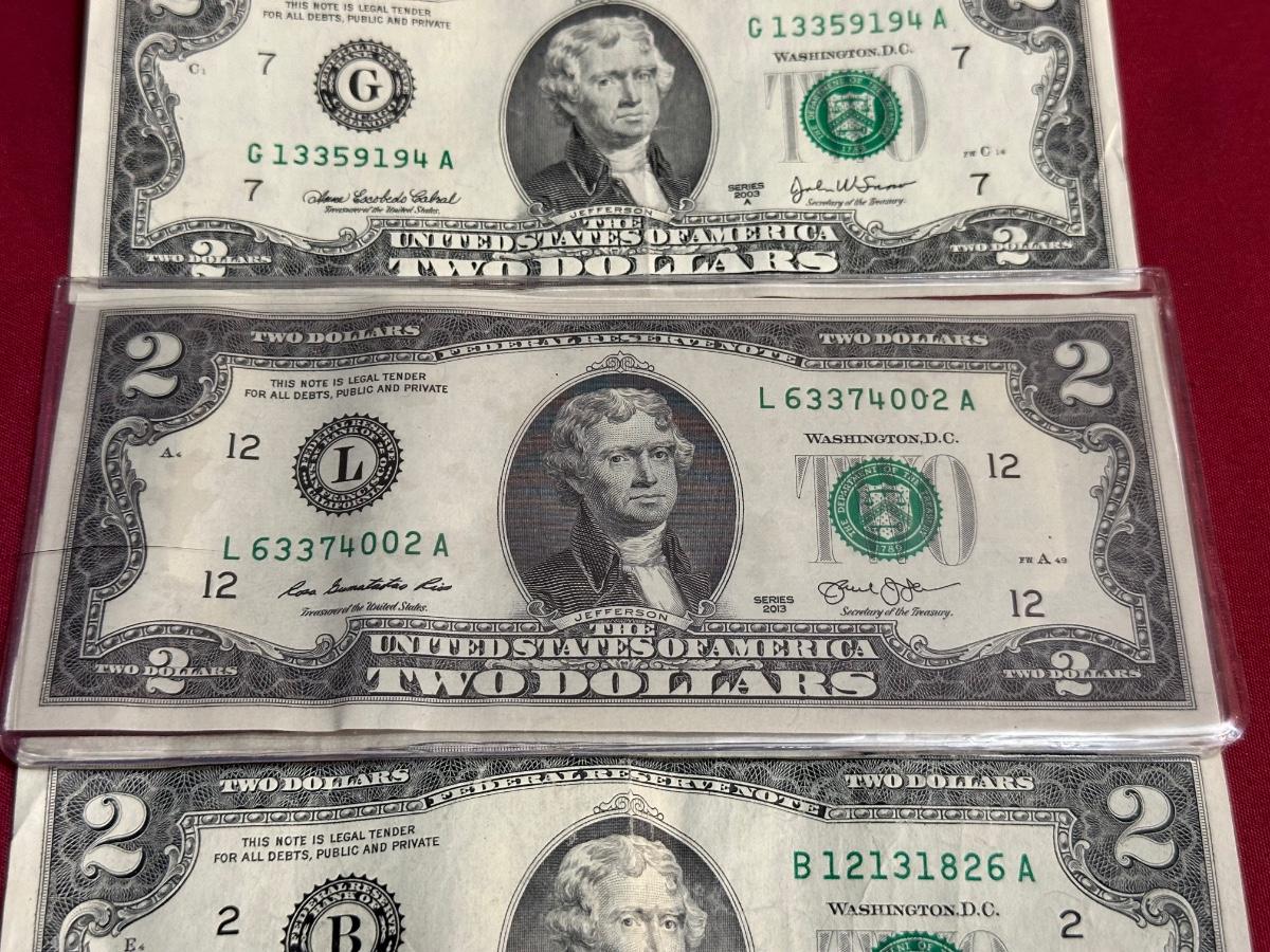 2003, 2009, 2013 $2 DOLLAR BILLS