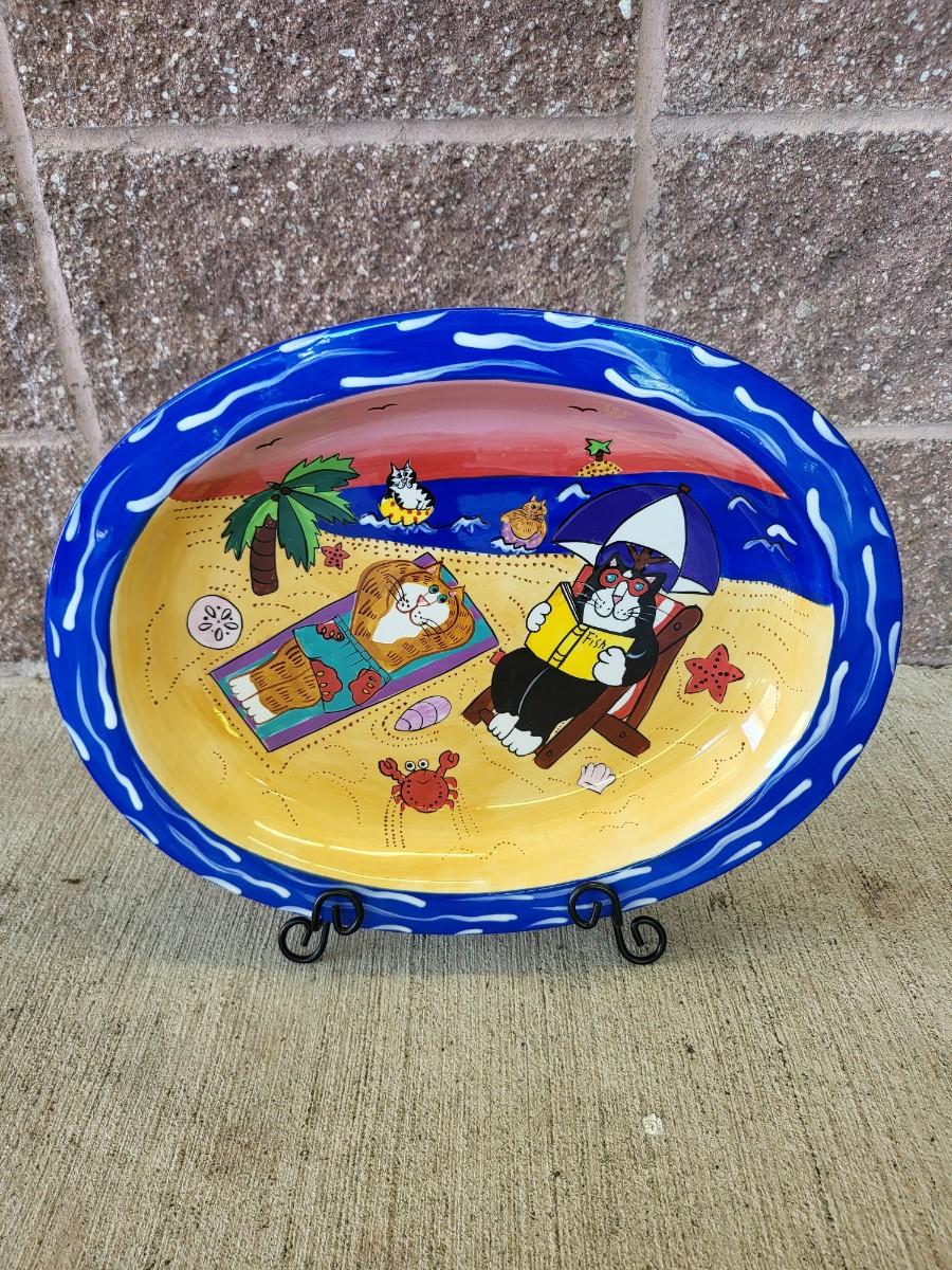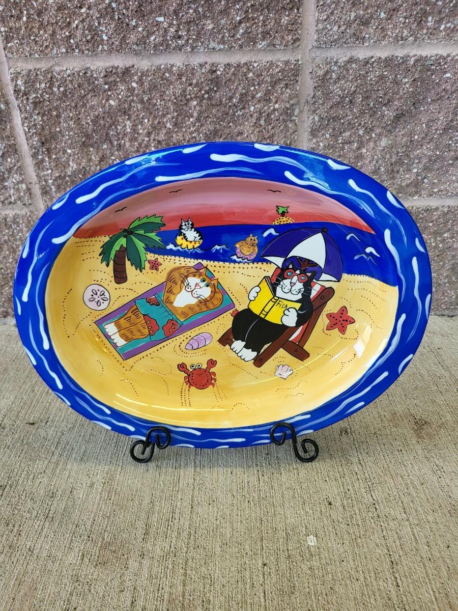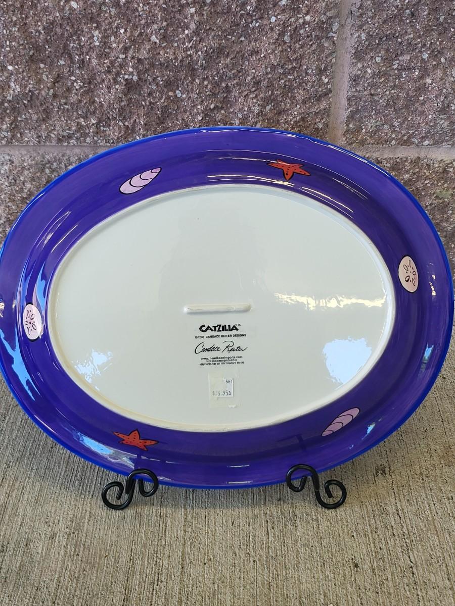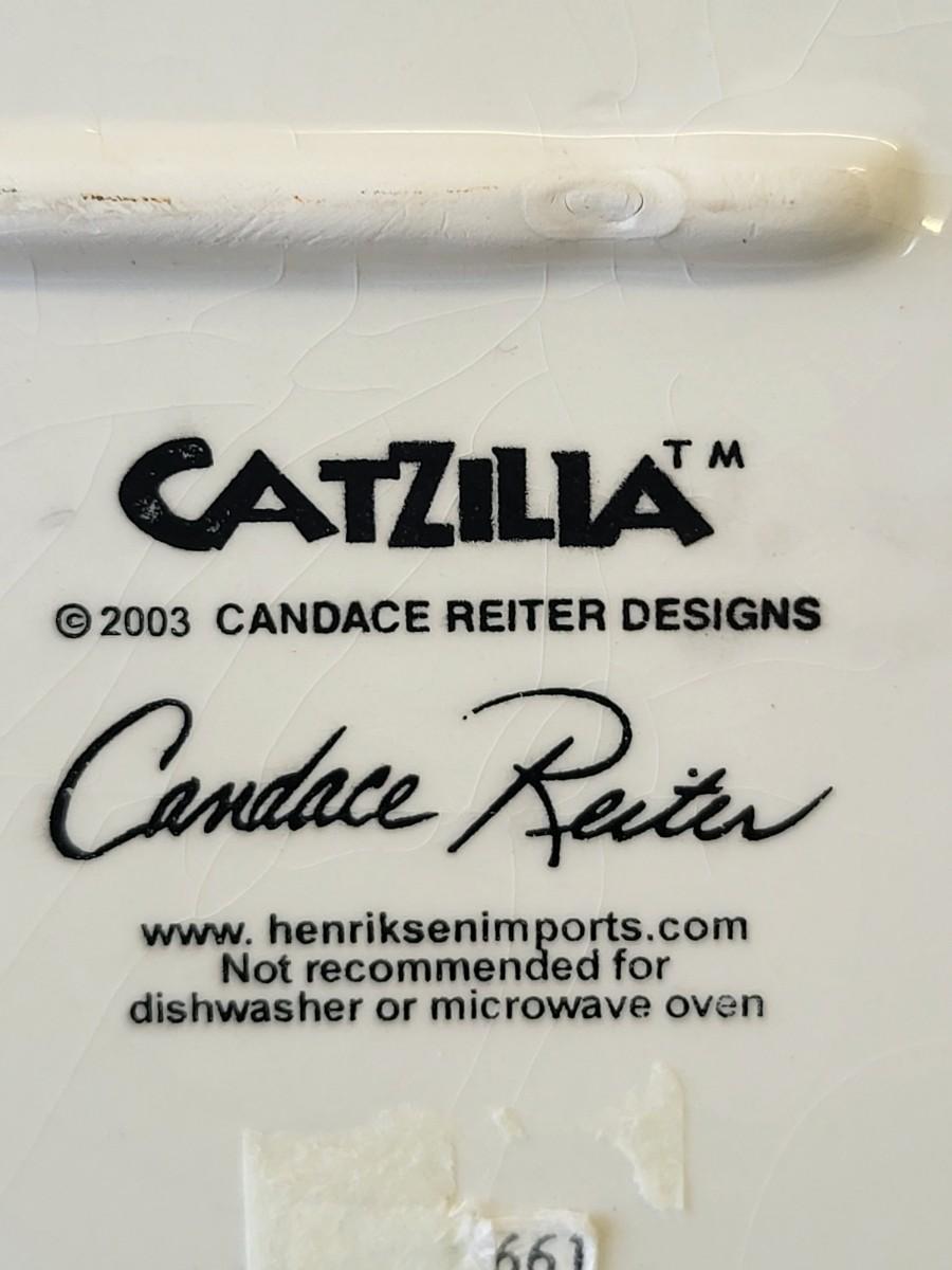 Catzilla platter 16" long x 12" deep x 1.5" tall. Comes with display stand. Shipping not available on this item.