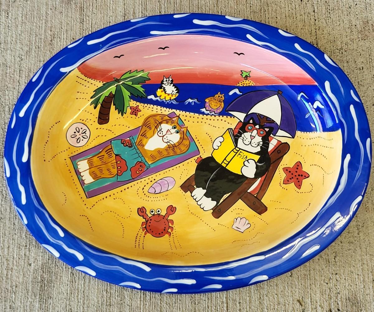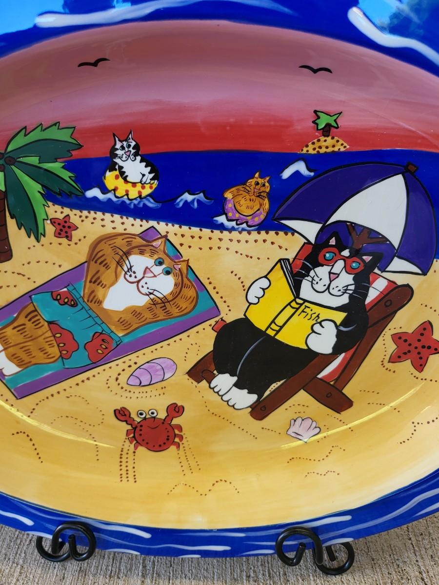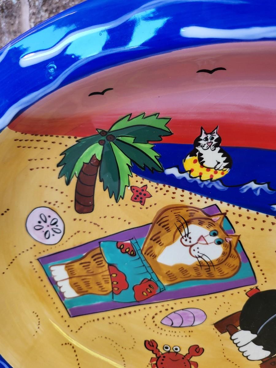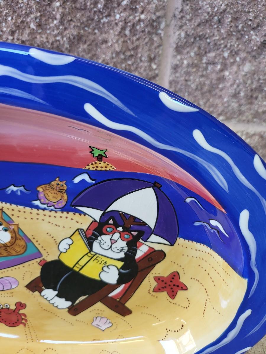 Catzilla platter 16" long x 12" deep x 1.5" tall. Comes with display stand. Shipping not available on this item.
