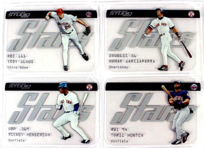 Beautiful Collection of 9 All Stars Insert Baseball Cards for 2003 Donruss Studio Stars Set - Included is 9 cards seen on photos, these insert baseball cards are see through and they look like credit cards - ALL cards are MINT - Great $$$ Value! Collector's Item!