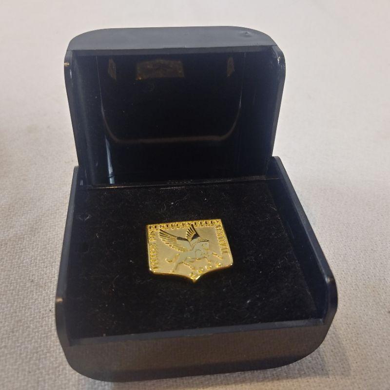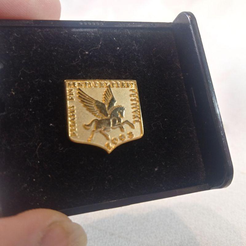 2003 Kentucky Derby Festival Gold Metal Pin. Comes in a nice black plastic keepsake box. Limited Edition number 16 of 500. Dated 2003. Marked 1/10 - 12K. Reserve Price $15.