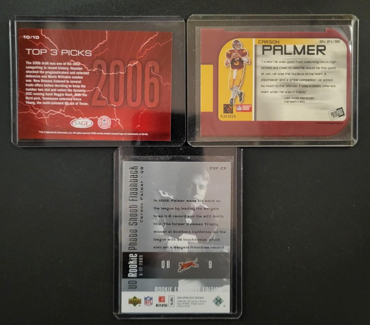 2003/2004/2006 PressPass, Topps, Upper Deck. Contains 3 Different Rookie Card Carson Palmer