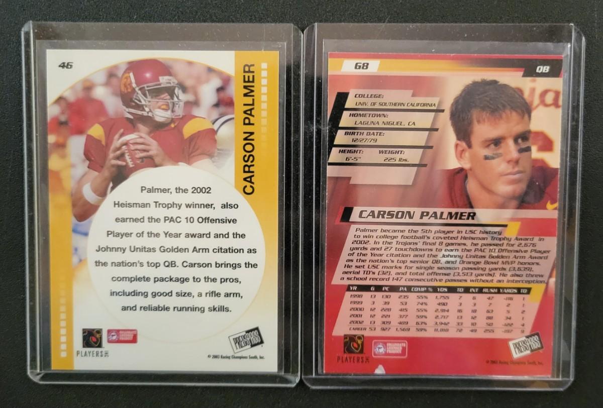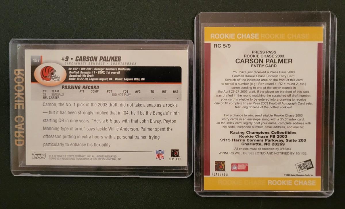 2003 PressPass, 2004 Topps Carson Rookie Card/Rookie Chase Card, 2006 Upper Deck Palmer Rookie