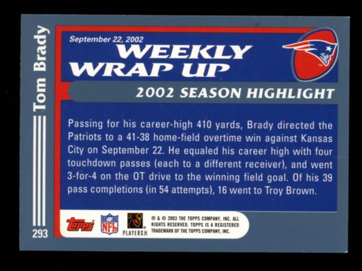 2003 TOPPS TOM BRADY WEEKLY WRAP UP