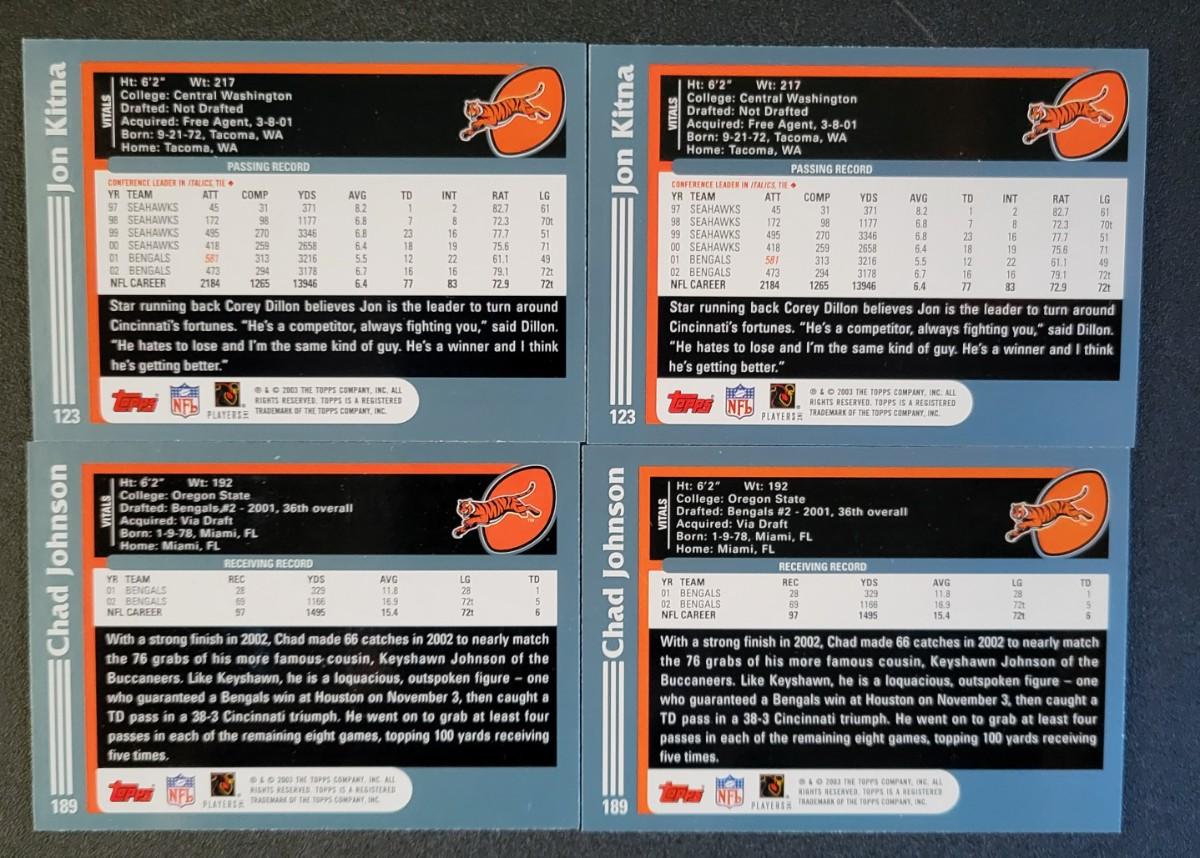 2002 Topps Washington Rookie (2), Palmer (2), Houshmandzadeh (2), Smith (2) Johnson (2), Kitna (2).