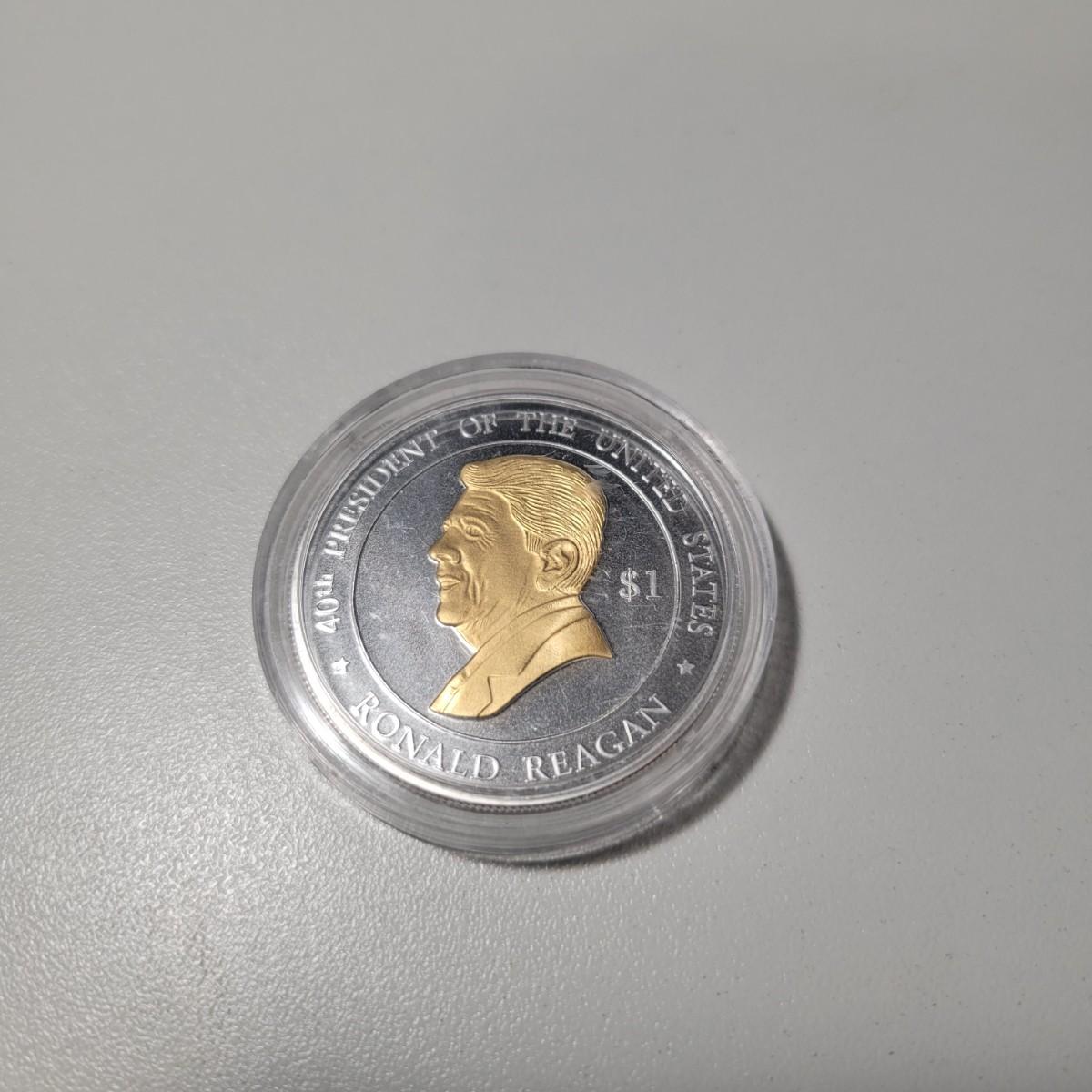 2004 $1 Cook Island Ronald Regan Sliver gold inlay